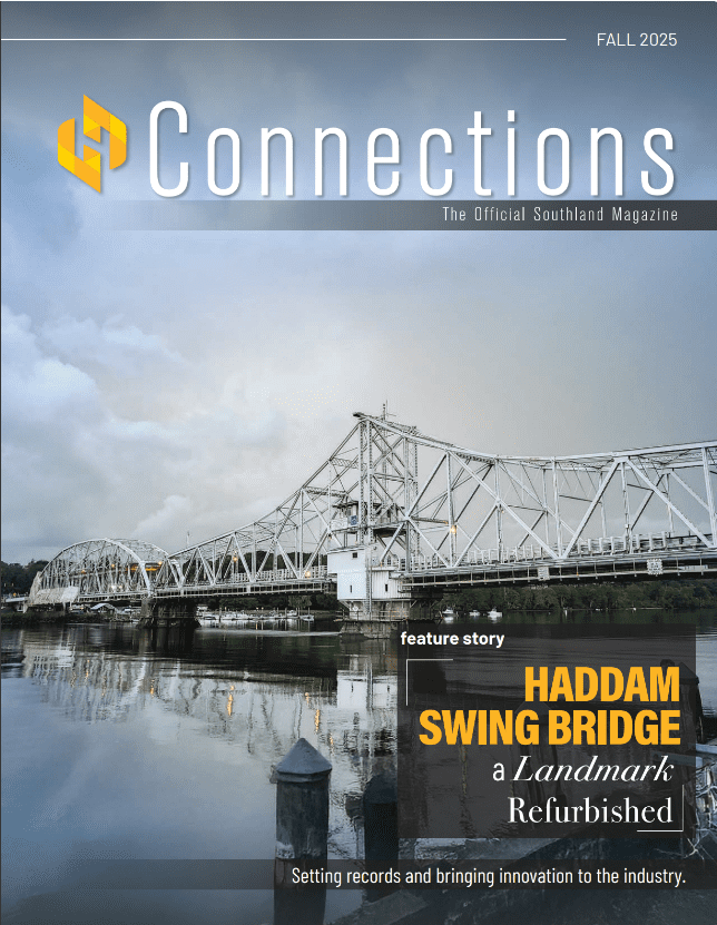 In this edition of Connections: FEATURE – HADDAM SWING BRIDGE FEATURE – NORTH END SEWAGE TREATMENT PLANT UPGRADE FEATURE – EMPLOYEE SPOTLIGHT - Jimmy Kirkman's Retirement FEATURE – JUPITER FEDERAL BASCULE BRIDGE FLASHBACK – KANEOHE-KAILUA Sewer Tunnel 2025 PROJECT WINS #ProtectMyFamily – How Southland Makes Safety Personal