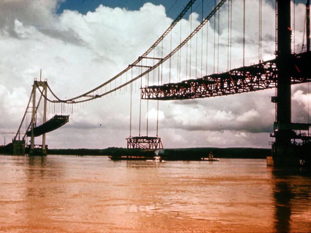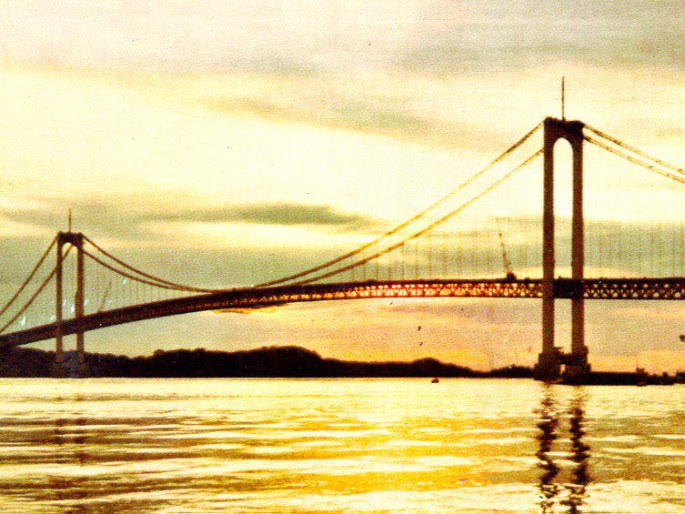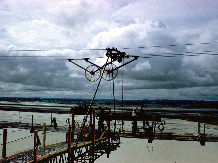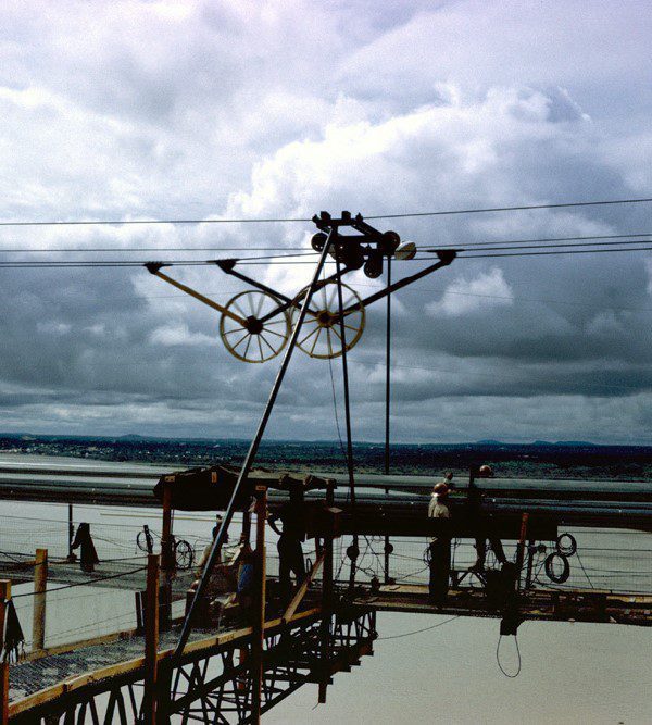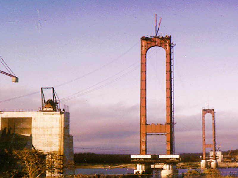 Completed in 1967 by American Bridge, the Angostura (Orinoco River) Bridge project consisted of the design, fabrication, and erection of a 5,509’ crossing in Ciudad Bolivar, Venezuela. Under subcontract, AB handled steel tower and superstructure fabrication, as well as erection of towers, cables, and deck. The 2,336’ main span features airspun 18.5″ main cables and a steel deck truss. It remains the longest suspension bridge in South America.