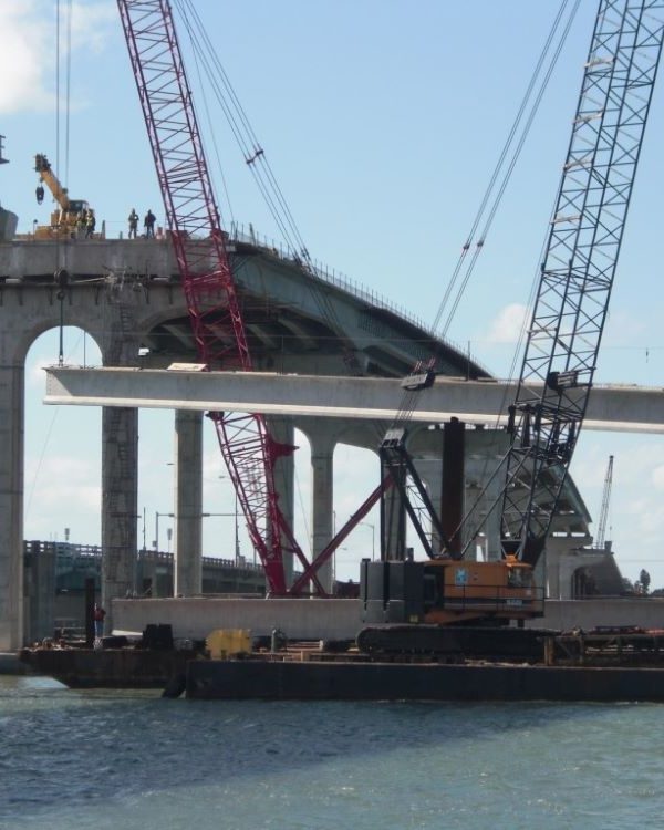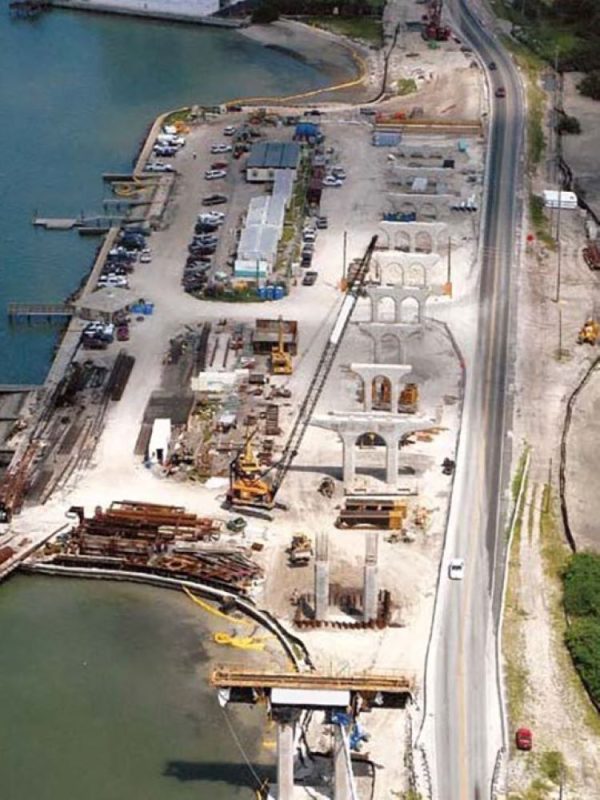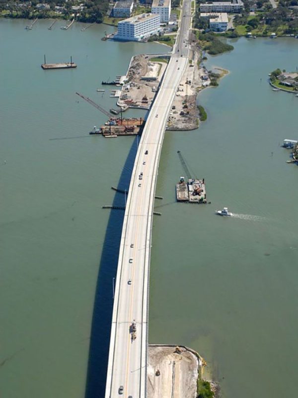 This project was a multiple award-winning project was a LAP project completed for Pinellas County and FDOT. The project consisted of replacing the existing low-level causeway with a high-rise bridge 3,450-foot and a 300-foot relief bridge over the ICWW with 74-foot clearance. This bridge was constructed over an environmentally sensitive estuary bay area using a post tension incremental launching method, launching 9 spans of 2 segments each from both ends with a 550-foot PT splice girder system connecting them in the middle. This Value engineering method saved on cost and schedule in which the owner shared in both. Other scope included roadwork, MOT, erosion control, embankment, underground utilities, sidewalks, sodding, boat ramp, piling, sheet piling and MSE walls. This award-winning bridge was ranked #5 by Roads and Bridges Magazines Top 10 Bridges for 2009. It also received the National APWA Award for 2009.