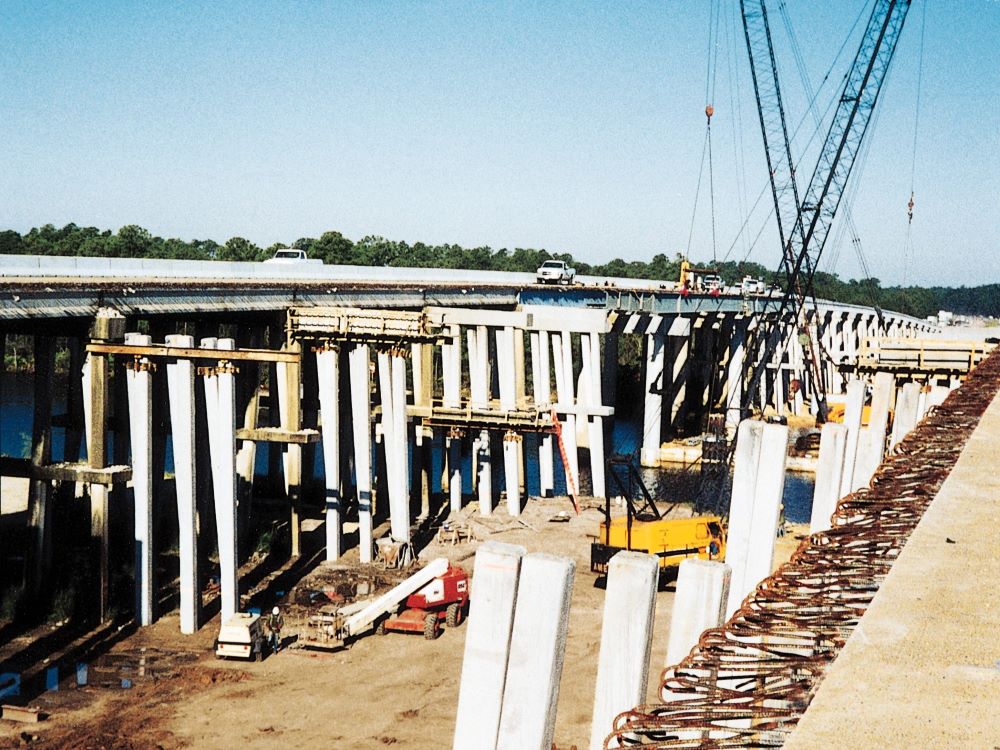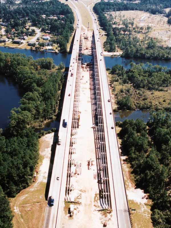 Completed in 2004 by Johnson Bros. Corporation, the Biloxi I-10 shoulders project consisted of addition of lanes to 5 locations (10 bridges) on I-10, inside lanes of east and west bound bridges, add shoulders to 5 bridges. Drive piles, caps, concrete girders, steel tub girders, decks, MOT, repair existing bridge decks, caps, piling in some cases.