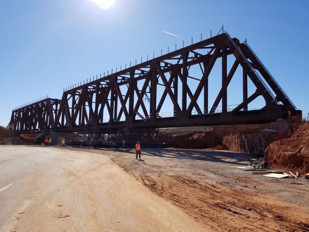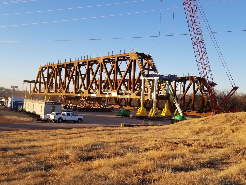 Subcontract scope of work included furnishing, transporting, and erecting two structural steel trusses. Each truss was 275-feet long, 21-feet and 44-feet wide, weighing in at 950 tons each with more than 55,000 permanent bolts. Additional work included engineering services and precast girders on 3 bridges.