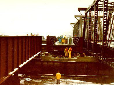 Completed in 1984 by American Bridge, the BNSF-Rock River Bridge project replaced a through-truss with a through-plate girder for Burlington Northern Railroad, now BNSF Railway.