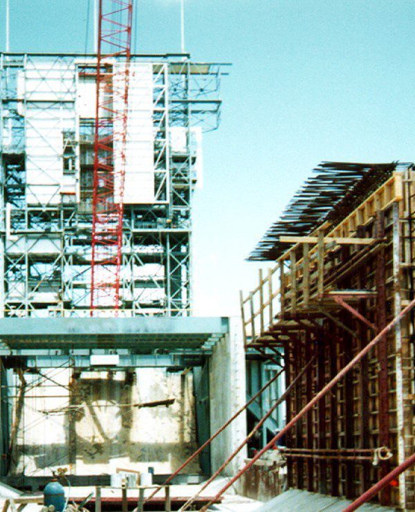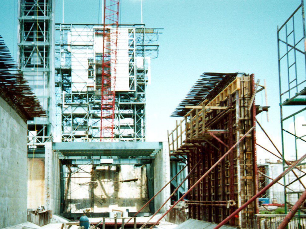 Completed in 1997 by American Bridge, the Boeing LC 17B Modifications project involved retrofitting mechanical systems for hydrogen, oxygen, nitrogen, helium, and propane tanks and piping. New concrete acoustical and flame deflector tunnels were built, and structural modifications to the Mobile Service Tower and Fixed Umbilical Tower were made for the revised Delta III rocket design. American Bridge also performed tasks like removing platforms, lighting, and structural steel work. We used innovative methods, including two simultaneous crews working from the middle to avoid interference. Despite a month-long delay due to damage at nearby pad 17A, the project was completed by accelerating work on cryogenic piping and structural steel and closely coordinating with subcontractors. In the final months, design changes required adjustments to acoustical ducts and the addition of a water suppression system, which were integrated within the project timeline.