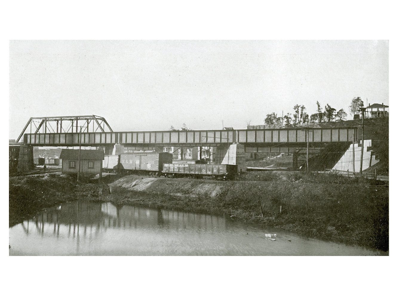 Consisting of three single-track through plate-girders, respectively 97 ft 0-in, 95 ft 0-in, and 78 ft 0-in long over all. Weight 349.5 tons.