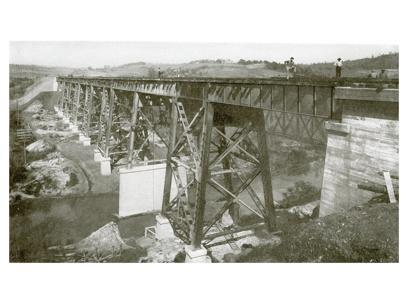 Double-track deck plate-girder viaduct; total length 750 ft; maximum height, 57 ft; alighment, square. Weight 890 tons. Project Details Owner: Southern Railway Location: Otter Creek, Virginia, United States Performed as: American Bridge Company Completion Date: 1911