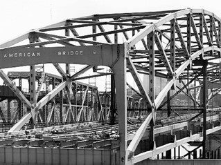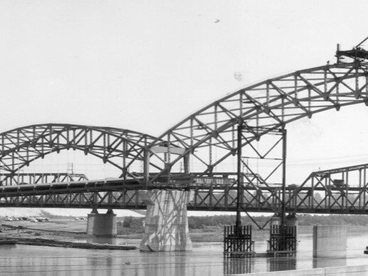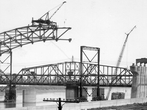 Completed in 1956 by American Bridge, the Broadway Street Bridge features three back-to-back tied arches: two 450 feet long and one 540 feet long.