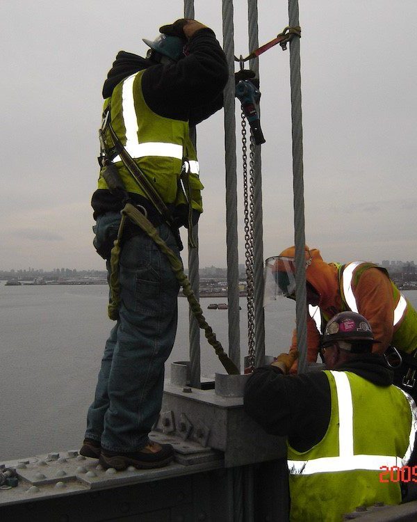 Completed in 2010 by American Bridge, the Bronx Whitestone Bridge Misc. Structural Improvements project involved fabrication and installation of structural protections for hanger ropes and main cables, along with tower reinforcements. The 3,868 suspension bridge, spanning Long Island Sound, remained fully operational during work, with American Bridge handling all traffic maintenance and security clearances. The bridge was originally constructed by American Bridge in 1939.