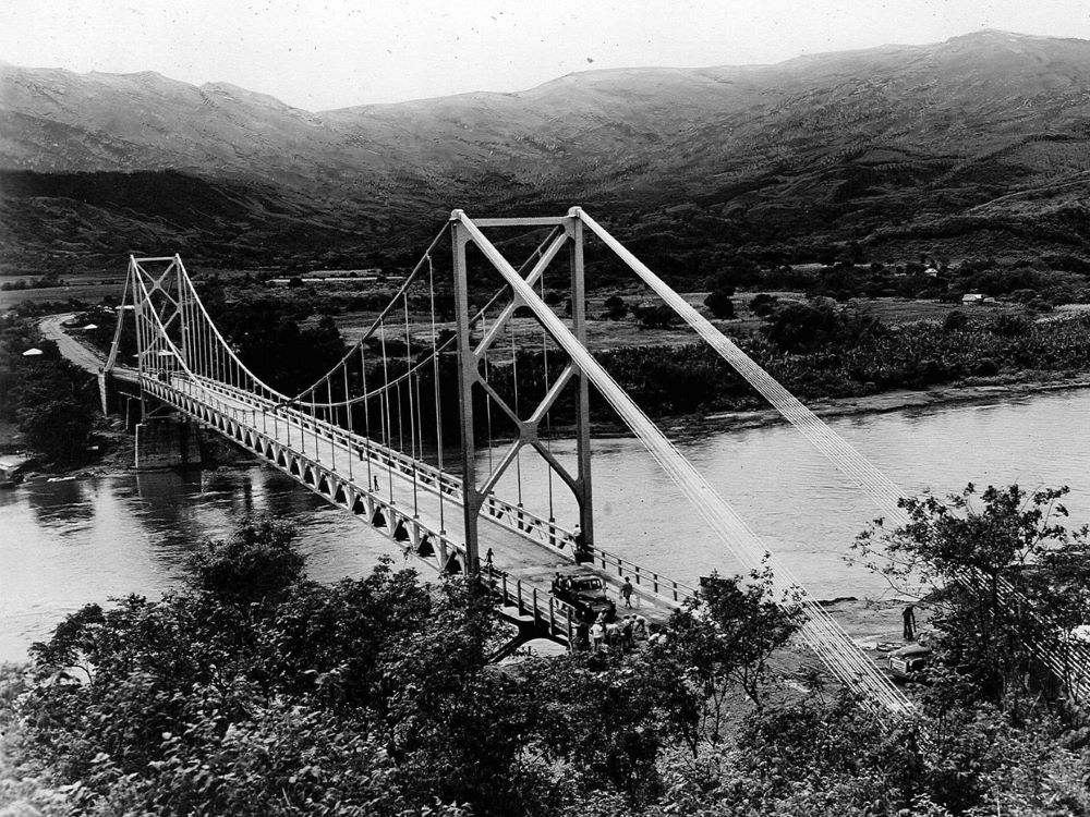 Completed in 1952 by American Bridge, the Cambao Bridge over the Magdalena River project consisted of constructing a two-lane highway suspension bridge with a 591′ (180.02m) main span and 733′ (223.34m) total length.
