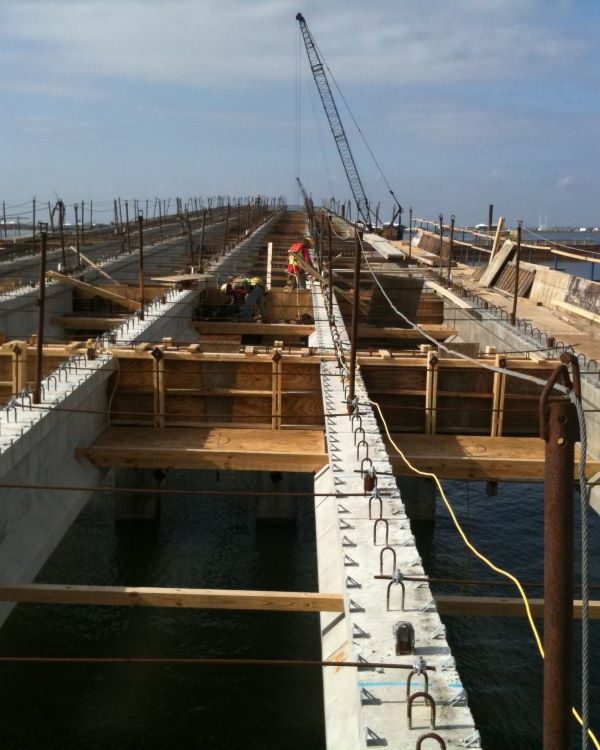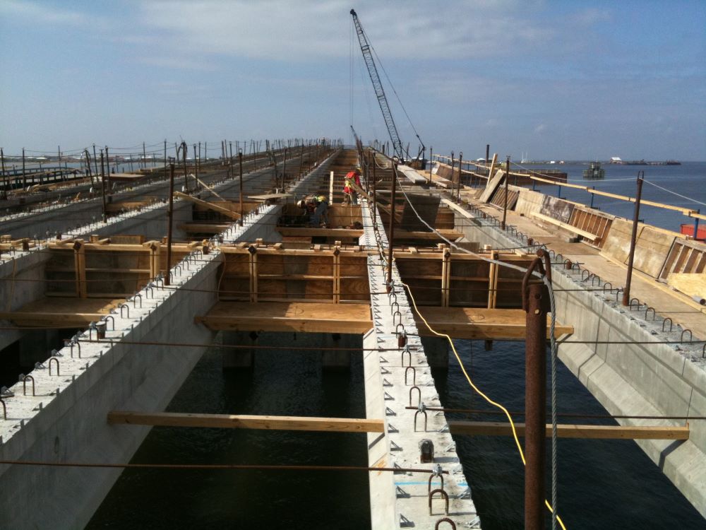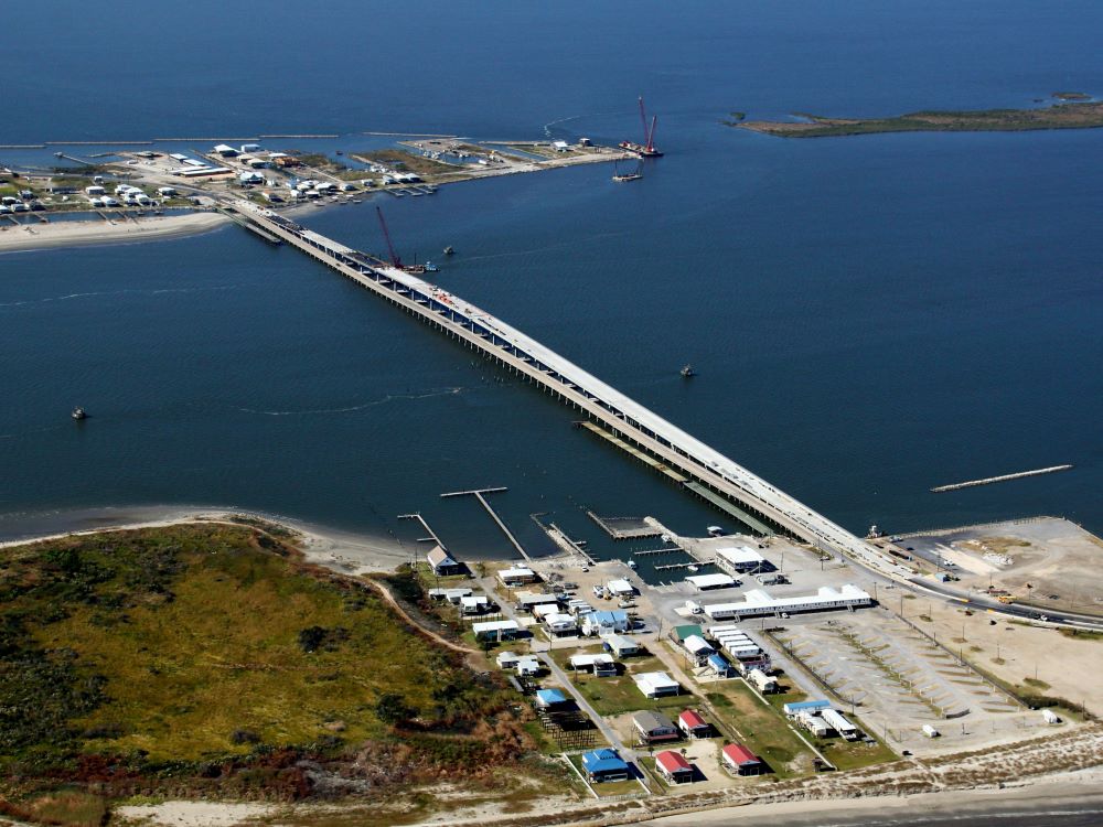 Completed in 2012, the Caminada Bay Bridge Project was a major roadway and bridge project that consisted of the replacement of the old Caminada Bay Bridge on La. 1 to Grand Isle with a new concrete girder span bridge. The new bridge has two lanes of traffic, two 8-foot shoulders and is elevated 48 feet, approximately 30 feet higher than the old bridge, to allow larger boats to pass. Construction included 2,775 cubic yards of embankment, road base with asphalt, all utilities, storm sewer, replace existing low-level bridge (3,900 linear feet), concrete piling, CIP concrete, mass grading with erosion control measures, and demo of existing bridge after completion. Total Length 1.2 mile.