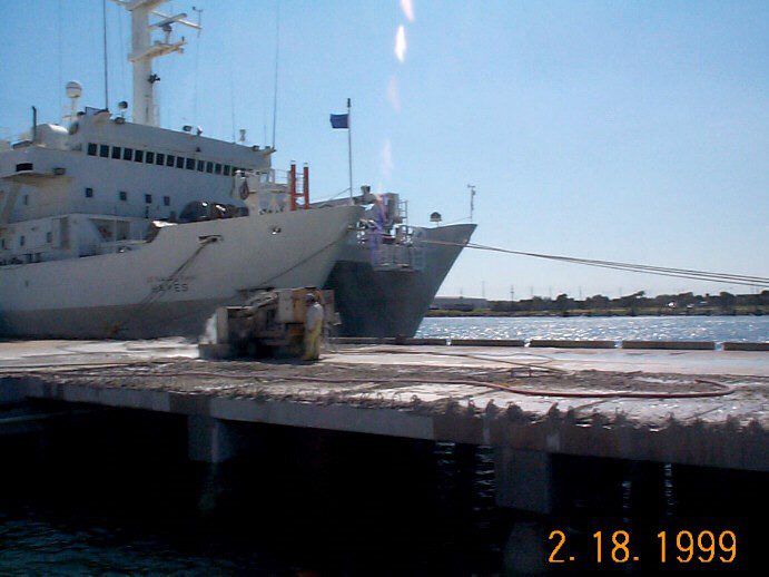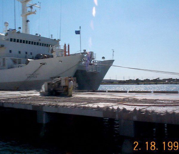 Completed in 1999 by American Bridge, the Canaveral Port Authority Pier Strengthening project involved structural repairs to piers and bulkheads, underwater concrete placement to seal steel sheet piling, piling repairs, and reconstruction of substructure portions below M.L.W., as well as demolition and replacement of dock topping slabs.