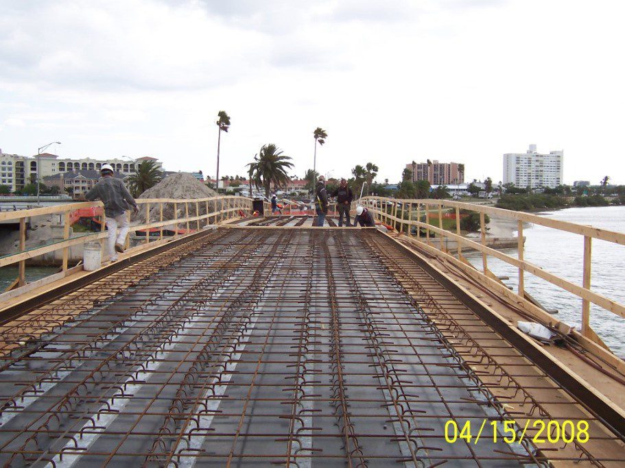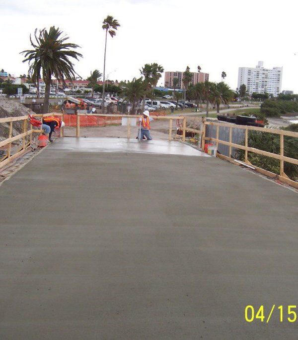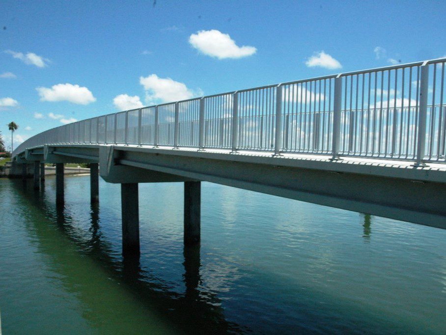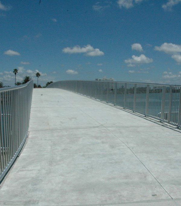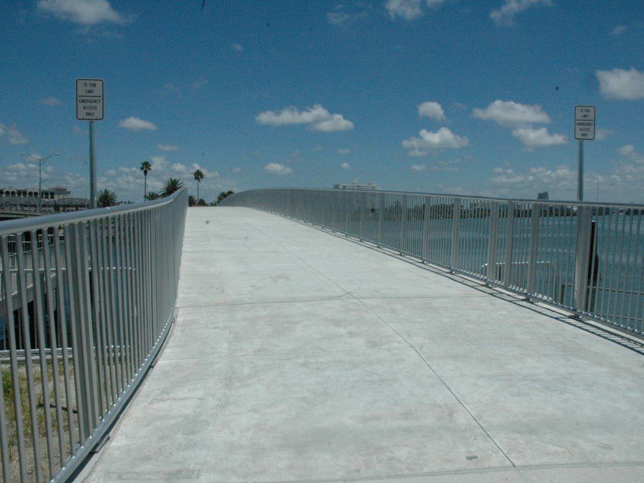 Completed in 2008 by American Bridge, the Clearwater Beach Pedestrian Bridge project included constructing a 320′ long, 16′ wide pile-supported concrete bridge in Clearwater, Florida, along with site work, parking lot modifications, and two three-pile cluster dolphins for a nearby dinner cruise slip.