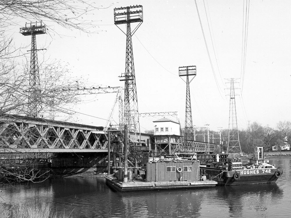 Completed in 1992 by American Bridge, the Cos Cob Drawbridge project involved the rehabilitation of six deck truss spans and the main bascule span of a 4-track, 9-span railroad bridge (totaling 886′). Work included structural steel repairs, bearing replacement, catenary tower and foundation replacement, and a new transformer building, all completed under active track conditions.