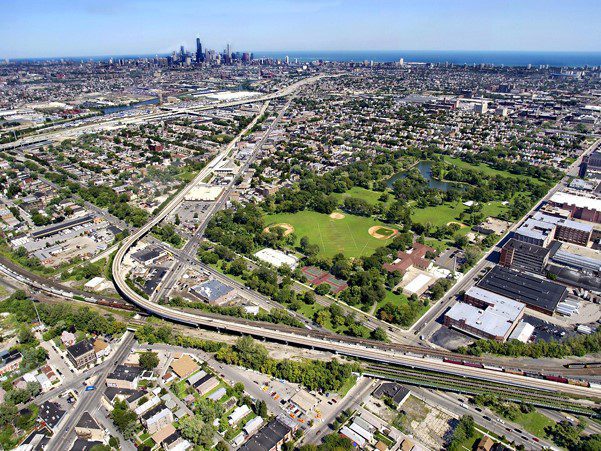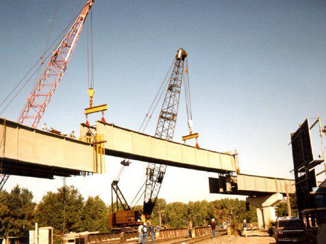 Completed in 1989 by American Bridge, the CTA Orange Line L project involved constructing a 28-span, two-track elevated transit line from downtown Chicago to Midway Airport. The 3,300-foot structure featured 14 spans of AASHTO beams and 14 spans of steel plate girders, many of which were curved and super-elevated. The project required close coordination with highway and freight rail operations.