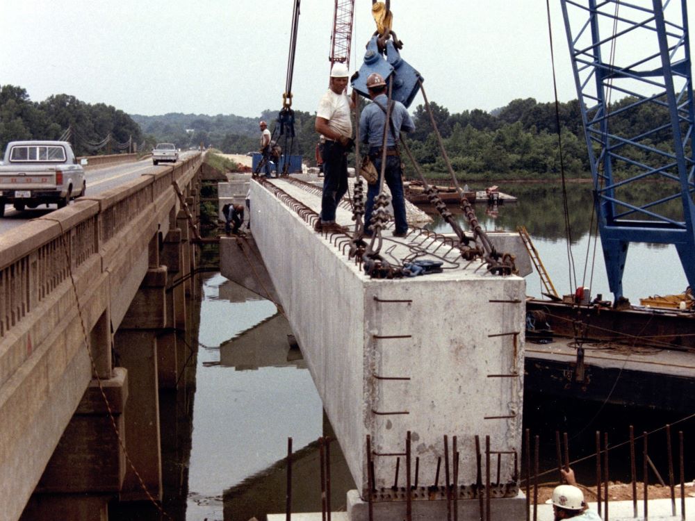 Completed in 1985 by American Bridge, the Cumberland River Bridge project consisted of erecting a 1,716-foot (523m) bridge with 983 feet of steel plate girder and 733 feet of precast concrete box beam approaches. The concrete portion includes seven spans of prestressed concrete box girders.