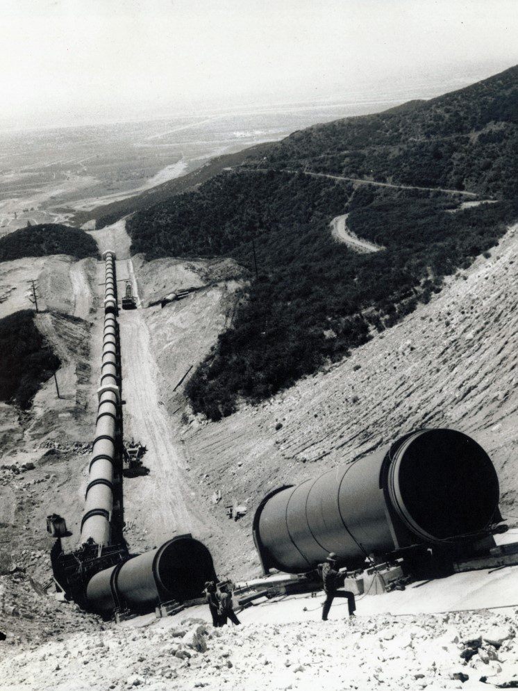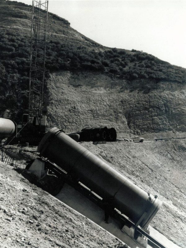 Completed in 1972 by American Bridge, the Devil Canyon Penstock Bridge project consisted of erecting the penstock using a crane on a wedge, with two slopes (approximately 60%) placed using the skidway system.