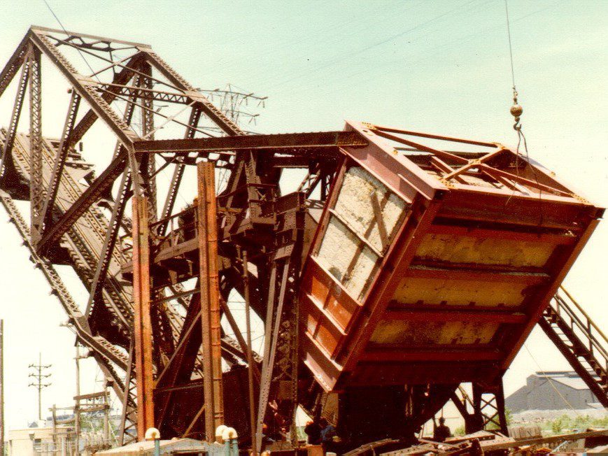 Completed in 1978 by American Bridge, the EJ&E Bridge #631 project consisted of replacing the counterweight on a rolling bascule.