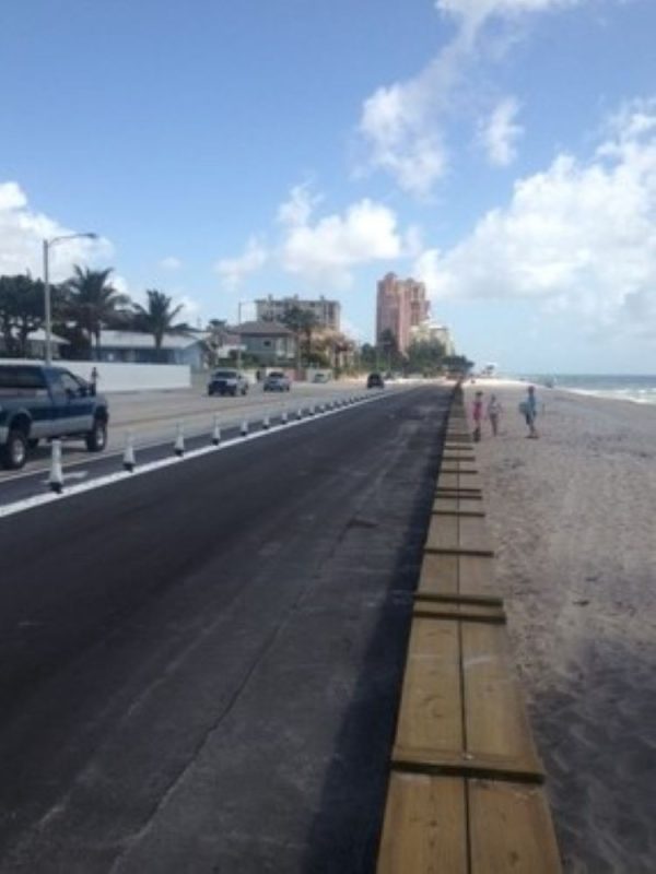 Completed in 2013, the Emergency Work A1A consisted of the construction of approximately 2,400 linear feet of new sheet pile seawall, coping caps, sidewalk, beach area and repair damaged section of A1A in Fort Lauderdale, FL.