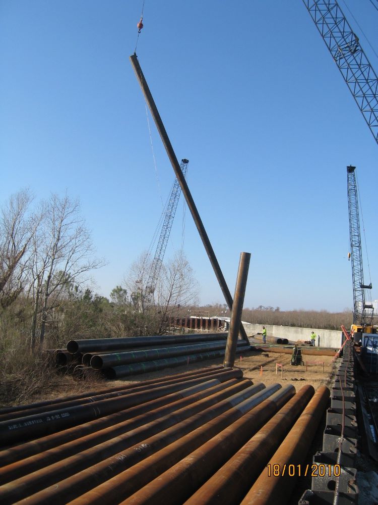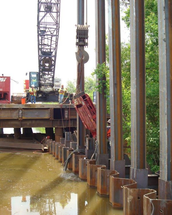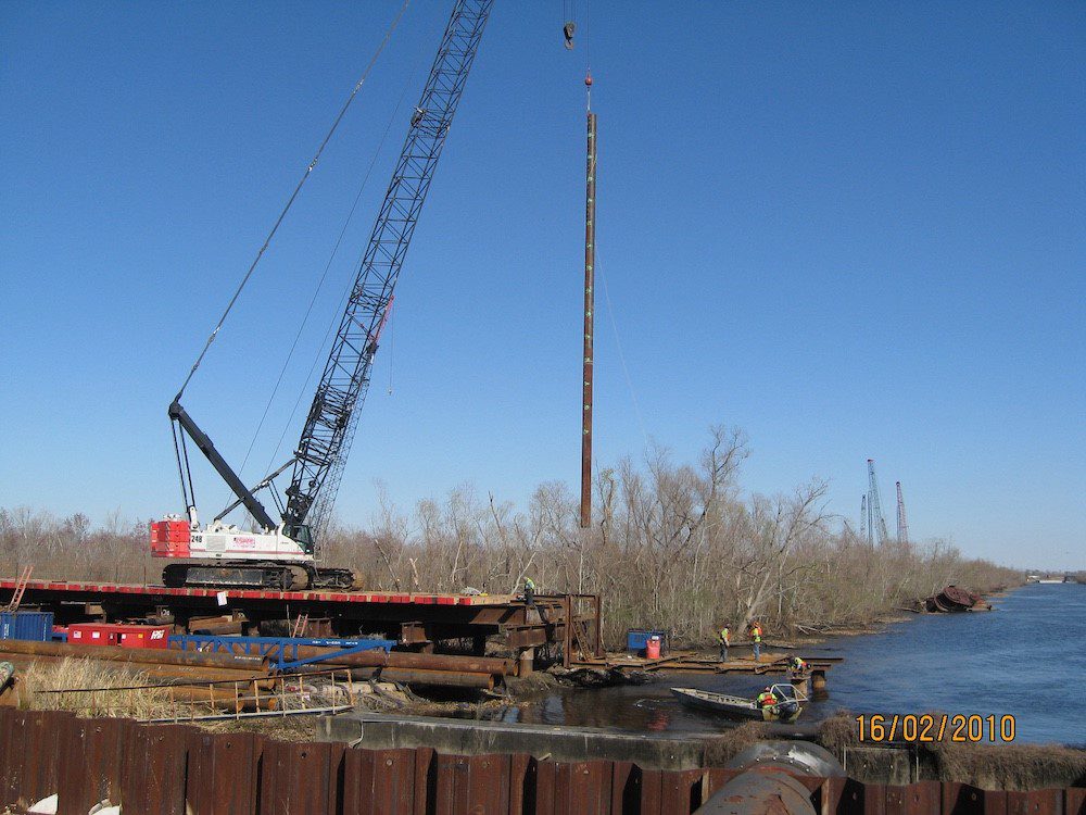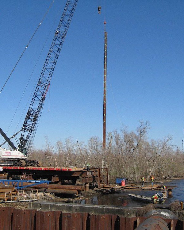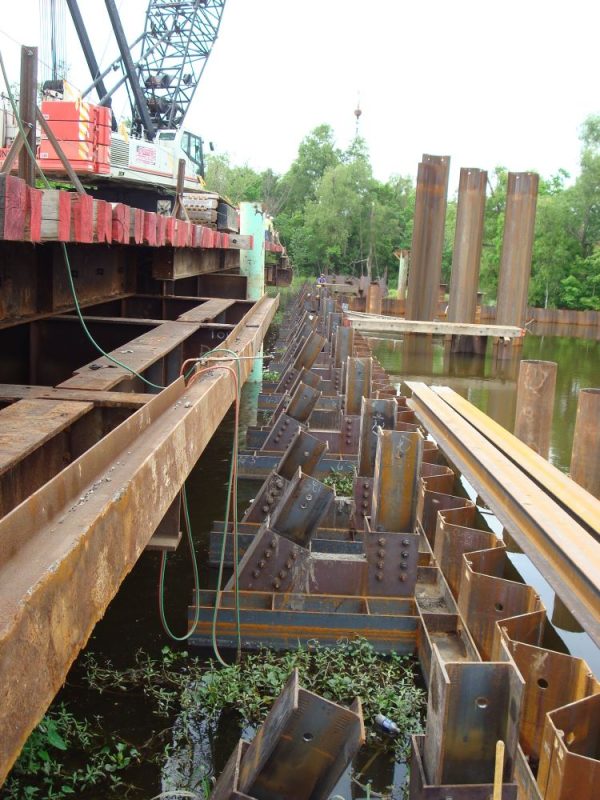 Completed in 2011 by American Bridge, the Estelle Pump Station Work Platform project involved installing and later removing a 476′ temporary work platform with steel pile supports, steel framing, and crane mats. Work was performed by Hill Brothers Construction.