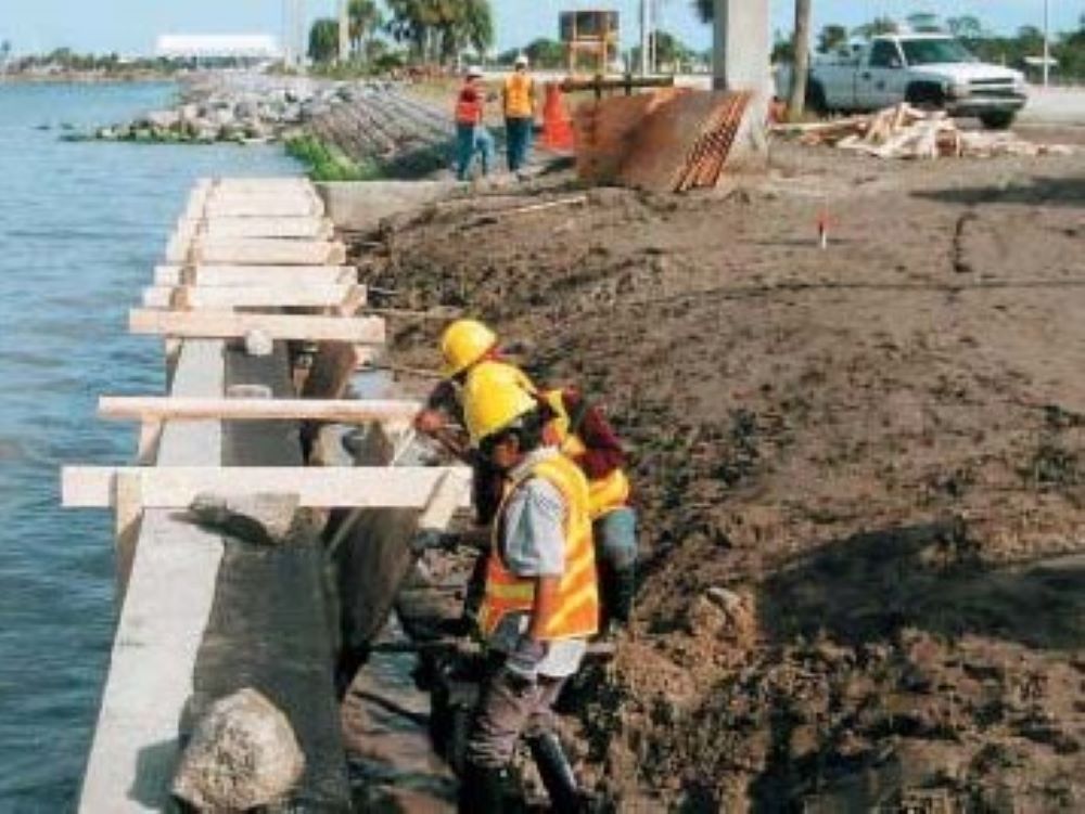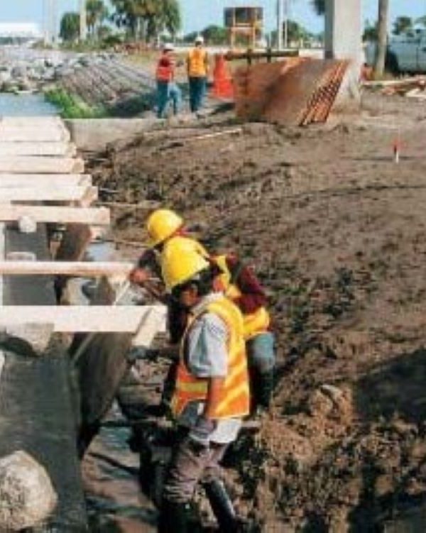 Completed in 2004 by Johnson Bros. Corporation, FDOT Hurricane Emergency Work – Brevard County – (5142) Hurricane Wilma project included the repairment of slope and rip rap rubble revetment area that was washed out by hurricane storm surge. Additional scope included adding embankment, rubble rip rap, concrete sidewalks, guardrail, maintenance of traffic (MOT), erosion control and turbidity.