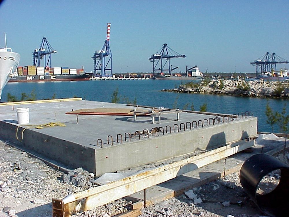 Completed in 2001 by American Bridge, the FOCOL Fuel Transfer Platform project consisted of a design/build 35’ by 20’ concrete dock structure supporting three rotating counterweight marine arms. The work included installation of 3” by 24″ pipe piles, a precast substructure and deck section, and a concrete deck topping wear surface.