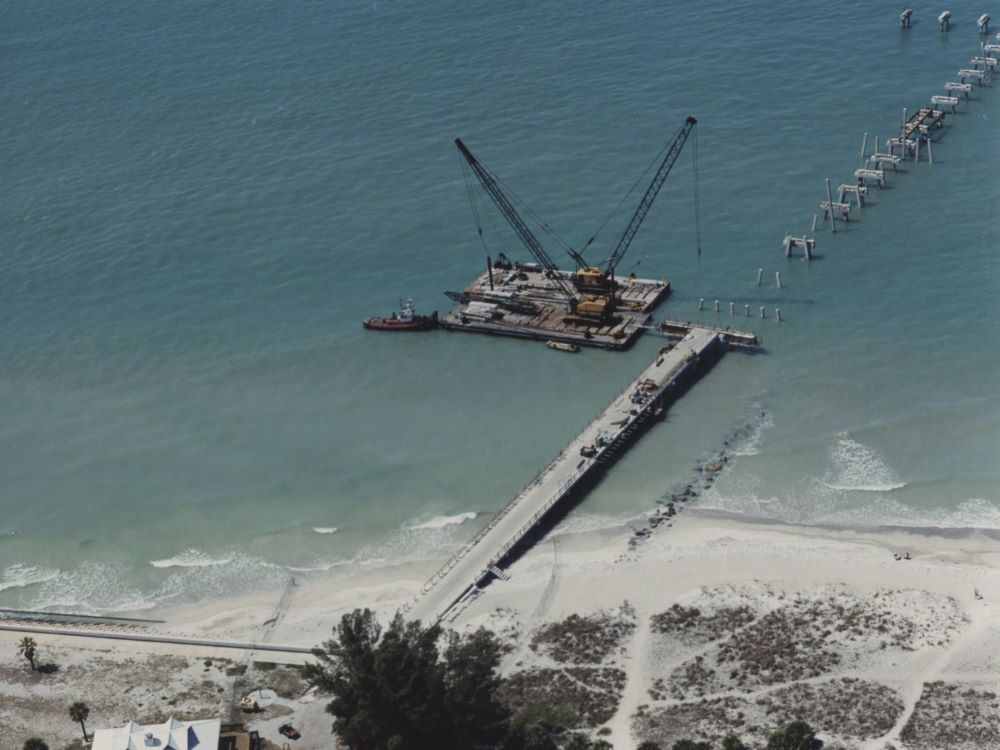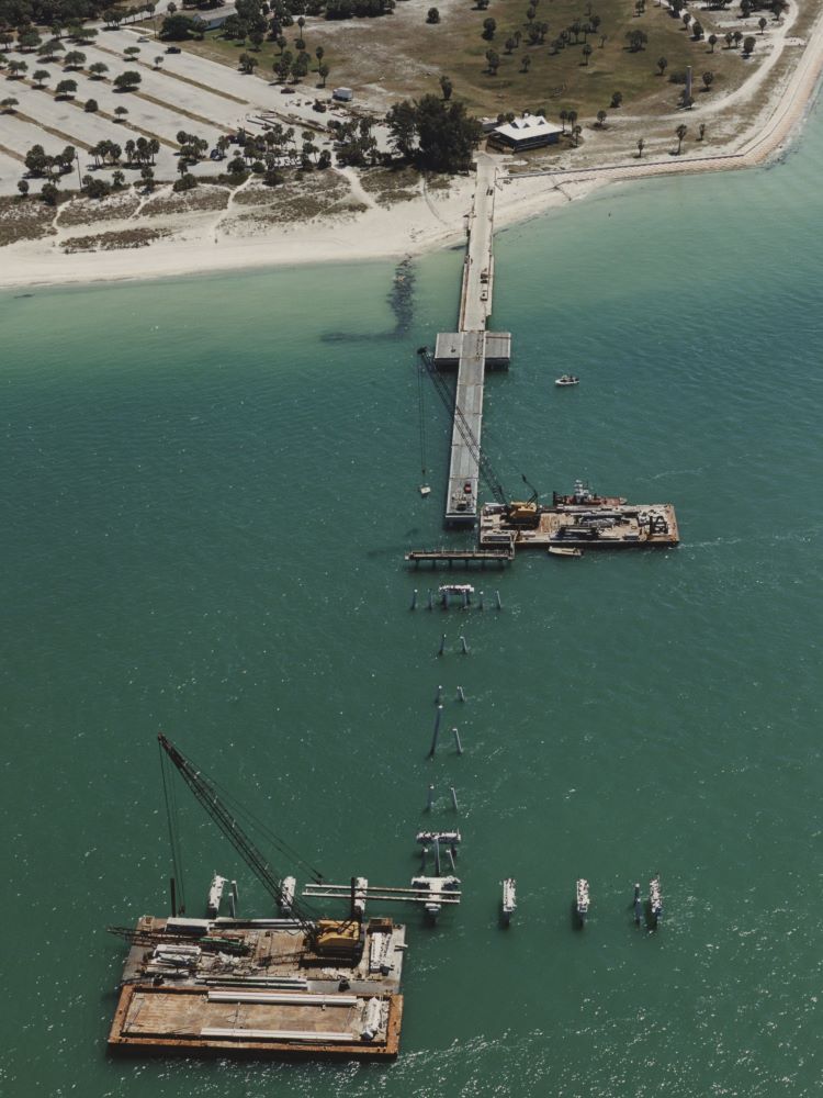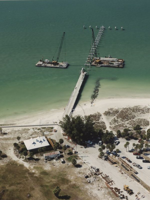 Completed in 2002 by Johnson Bros. Corporation, the Fort Desoto Gulf and Bay Piers Repairs project consisted of the demolition and replacement of the fishing pier at Fort Desoto County Park. The pier was constructed on 20-inch concrete piling with precast deck slabs with a poured deck topping. The pier extended approximately 1,100 feet into the Gulf of Mexico and was built completely off barges.