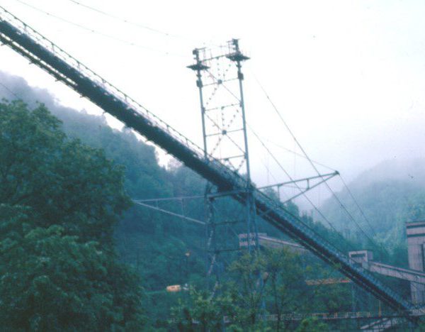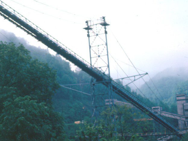 Completed in 1982 by American Bridge, the Gary Refuse Conveyor Bridge project consisted of main cable and suspender rope replacement on a 1,117-foot suspension bridge carrying a mine refuse conveyor. All design work was performed by American Bridge Engineering.