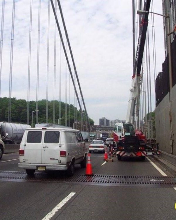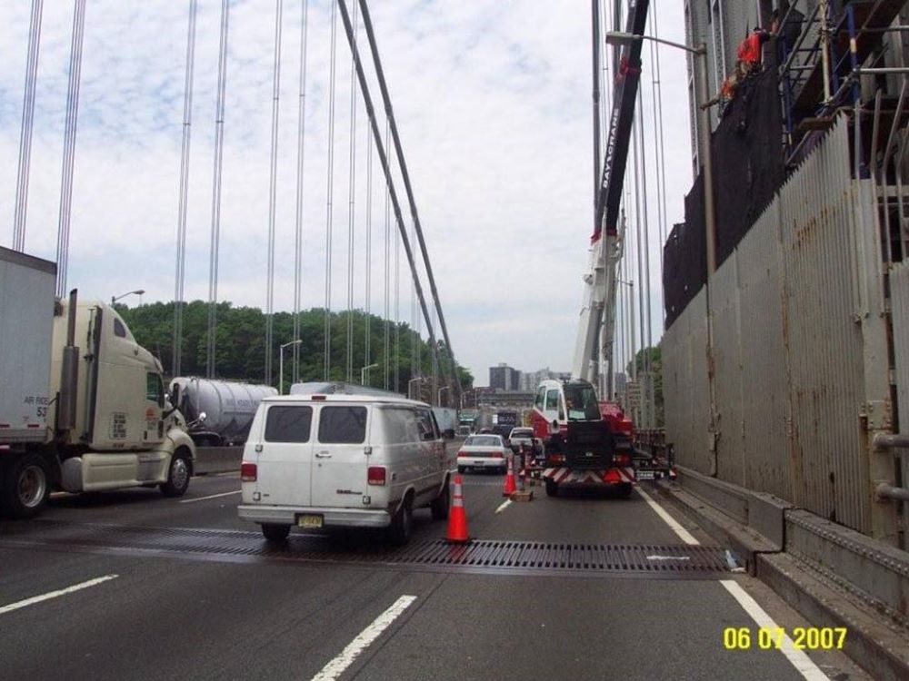 Completed in 2007, the George Washington Bridge Handrail Rope Replacement project involved replacing eight handrail ropes and stanchions on the four main cables at the New Jersey backspan of the 4,720’ suspension bridge over the Hudson River.