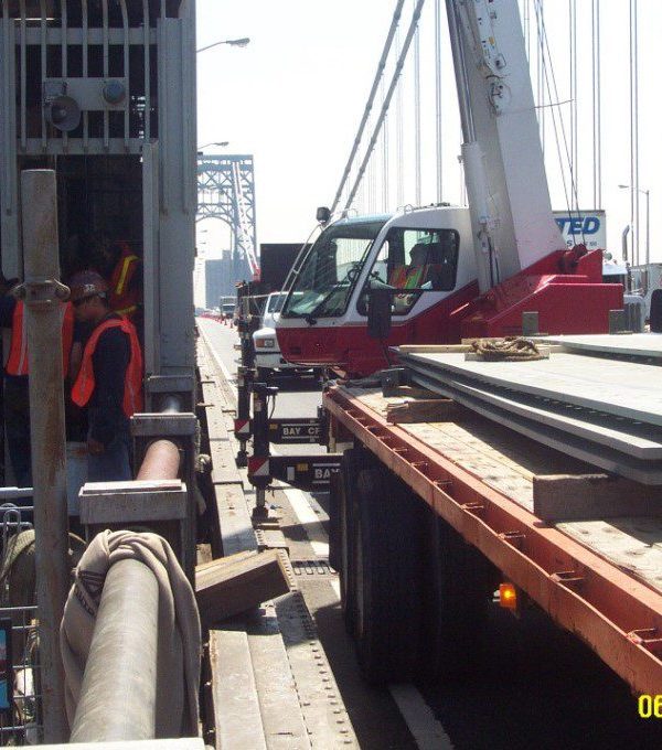 Completed in 2007, the George Washington Bridge Main Tower Protection project involved reinforcing the roadway tower columns at deck level on both towers of the George Washington Suspension Bridge.