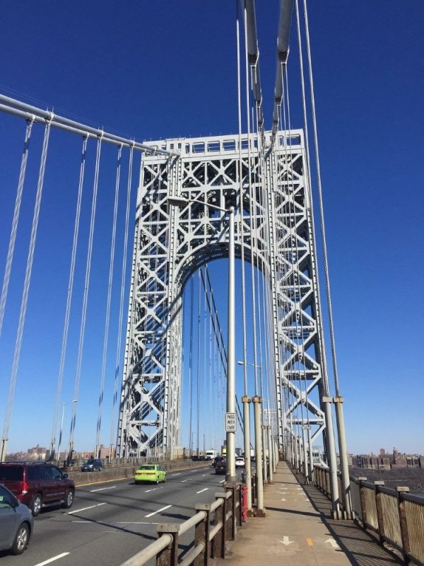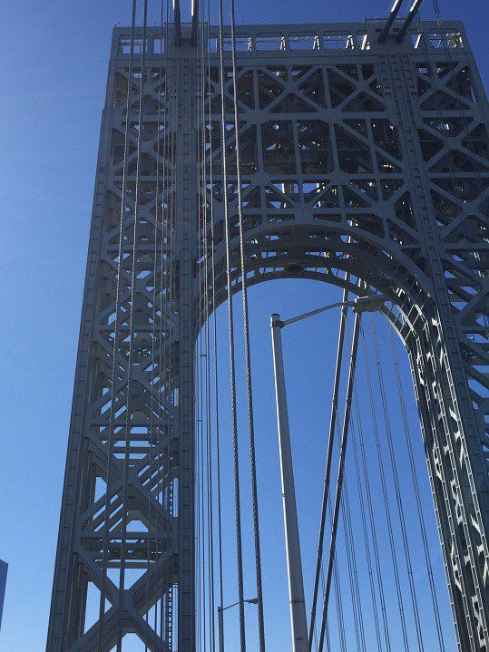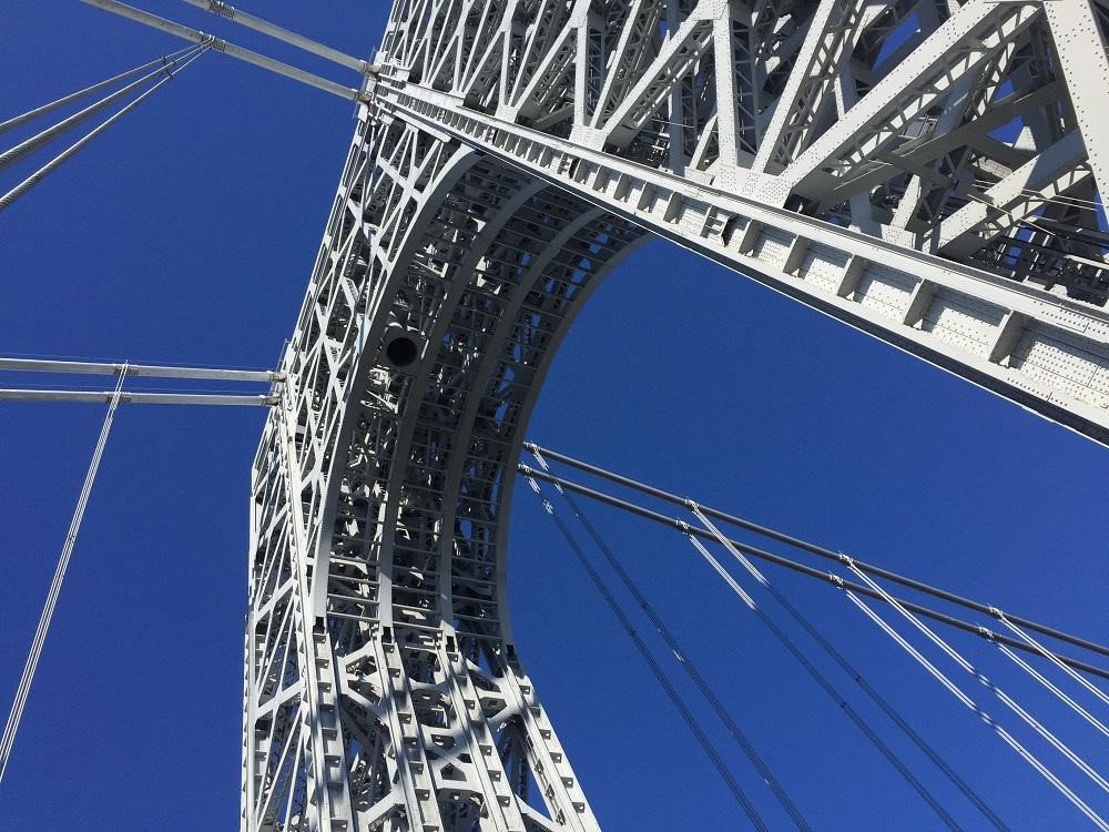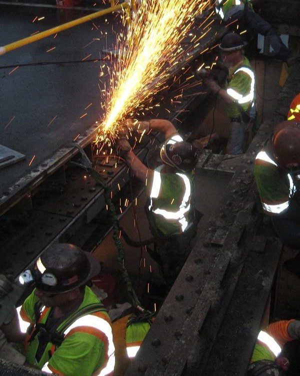 Completed in 2015 by American Bridge, the George Washington Bridge Upper Level Structural Steel Rehabilitation involved replacing portions of the orthotropic deck with prefabricated, prepaved panels at 79 points. Work included structural steel modifications, secondary floorbeam replacements, steel member repairs, ultrasonic peening of deck welds, lead abatement, drainage installation, asphalt repaving, finger joint rehabilitation, and temporary utility relocations. Traffic maintenance measures included ramp closures, detours, and lane closures. Nighttime work was conducted Monday-Thursday (11 p.m.-5 a.m.) and Friday-Saturday (10 p.m.-10 a.m.).