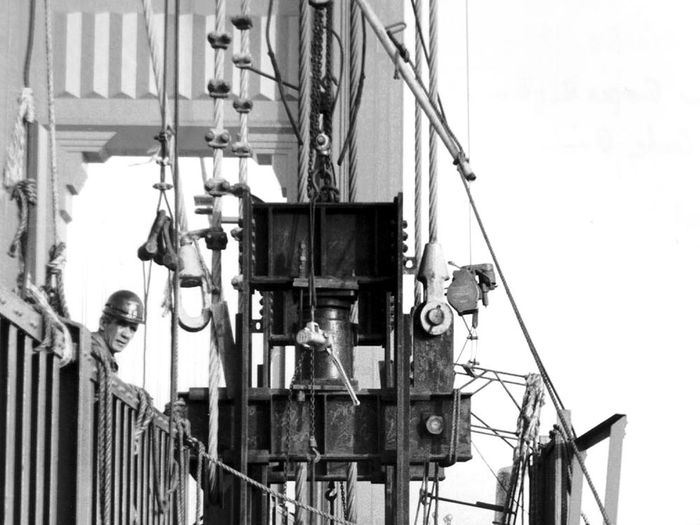 Completed in 1969 by American Bridge, the Golden Gate Bridge project consisted of replacing the suspender ropes and conducting a main cable inspection.