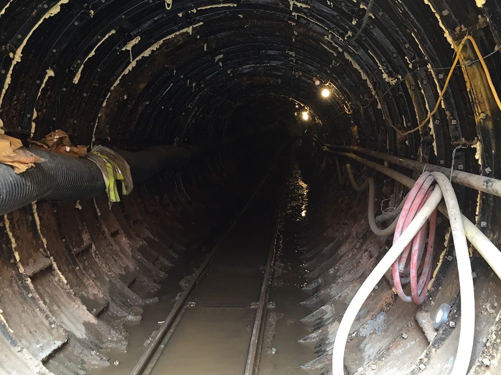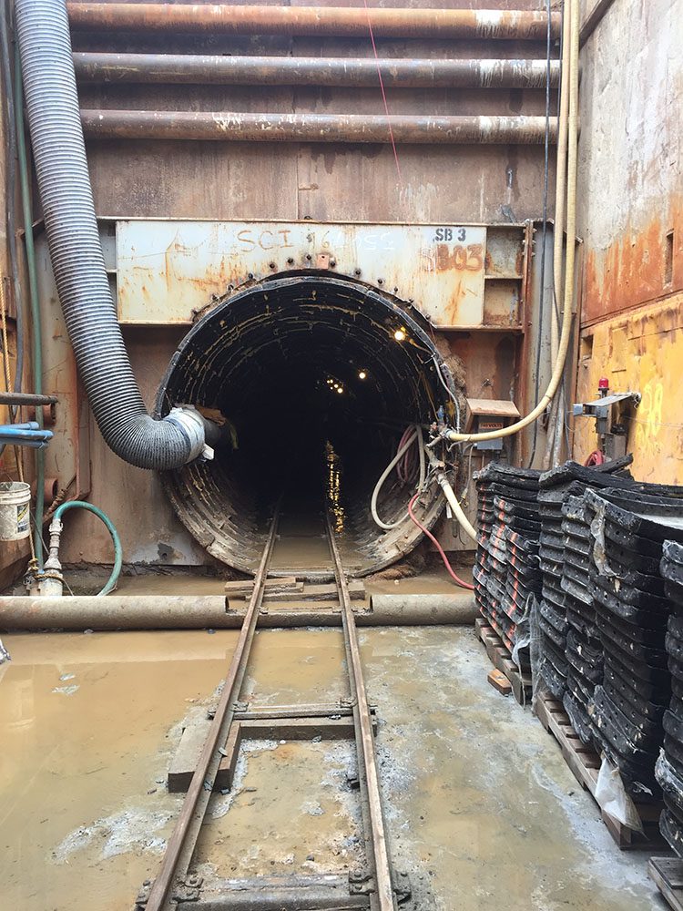 Completed in 2017 by Southland Contracting, the Highway 4, Phase IV Tunnel Project consisted of installation of approximately 3,400 linear feet of 84-inch liner plate tunnel with 42-inch ductile iron carrier pipe. The tunnel was excavated by hand mining and with a rock Tunnel Boring Machine (TBM). Ground conditions range from silty sand to hard rock consisting of Biotite Gneiss and Mica Schist. The rock portion of the tunnel consisted of rock with unconfined compressive tests between 8,000-20,000 with an average of 16,000 psi.