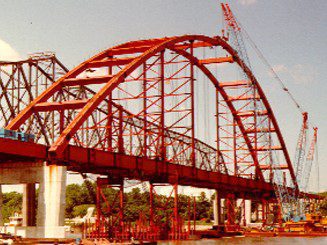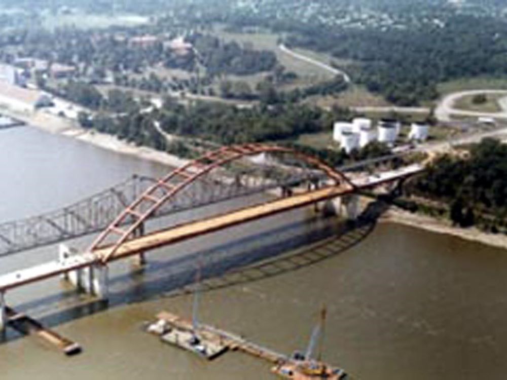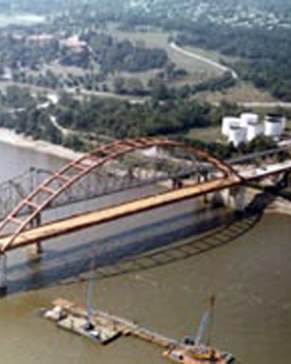 Completed in 1983 by American Bridge, the Jefferson Barracks Bridge project consisted of a superstructure fabrication and erection contract for a 4,000′ Mississippi River crossing, including a 910′ box chord tied arch main span and steel plate girder approaches. This tied arch is one of the largest of its type in the USA.