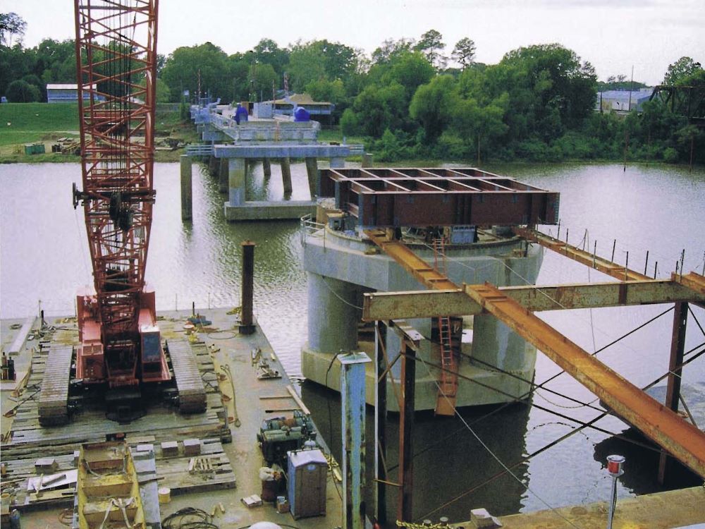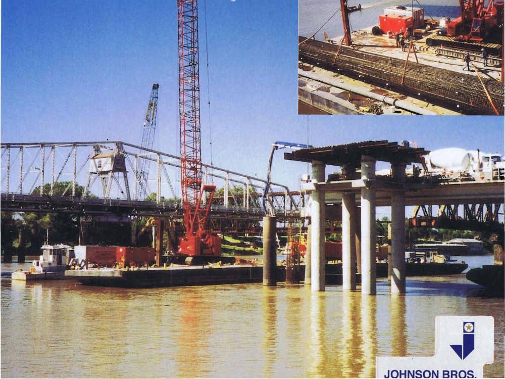 Replacement of center pier and swing spang of 100 year old bridge. 9 drill shafts 9 foot in diameter and 135 feet long.