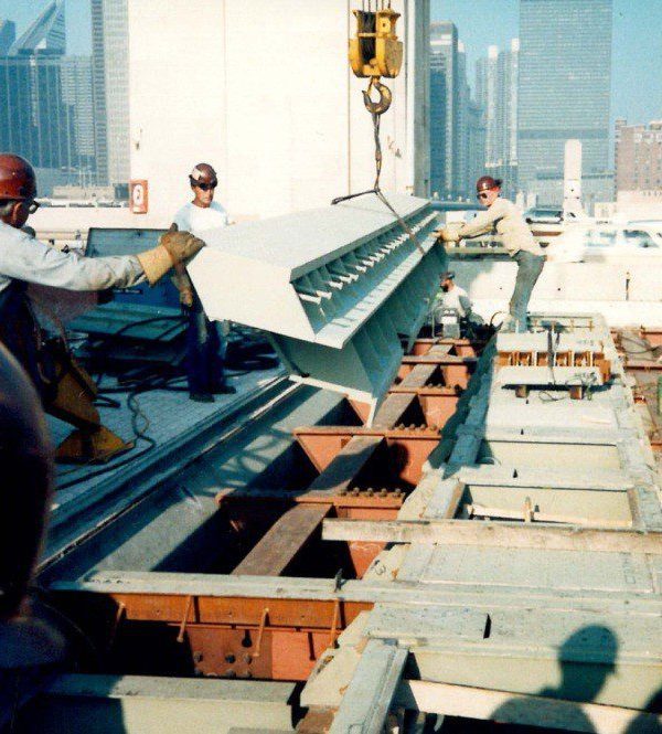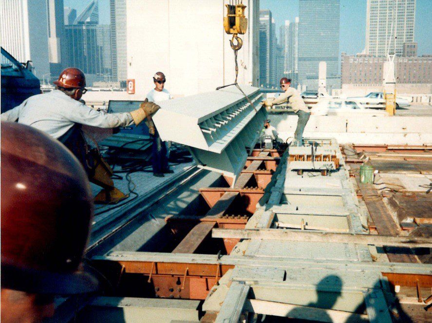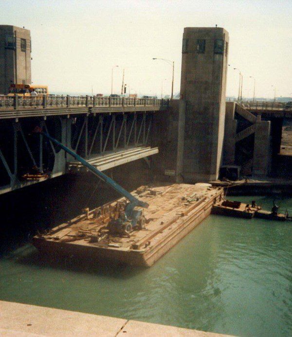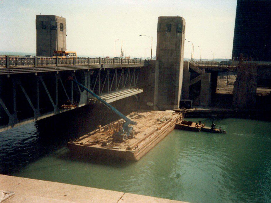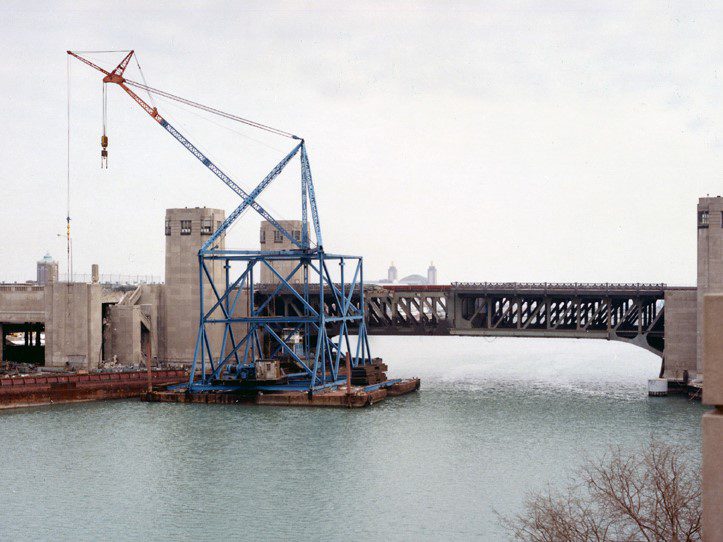 Completed in 1985 by American Bridge, the Lakeshore Drive Bascule Bridge Reconstruction project consisted of a complete reconstruction of a double-leaf, double-deck trunnion roadway bascule bridge. The overall length of the main span is 262′-6″ (center-to-center of trunnions). Work included the replacement of structural members and the entire floor system, as well as the repair and replacement of operating machinery.
