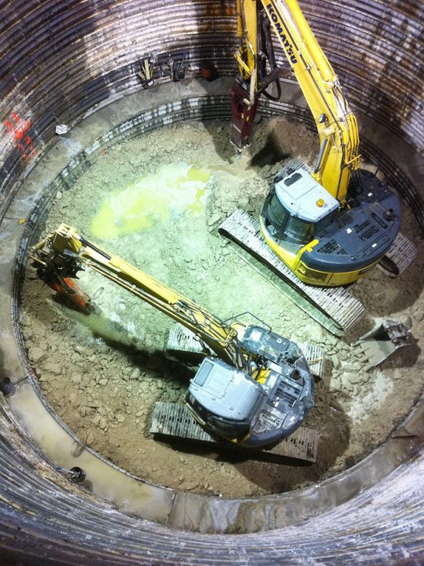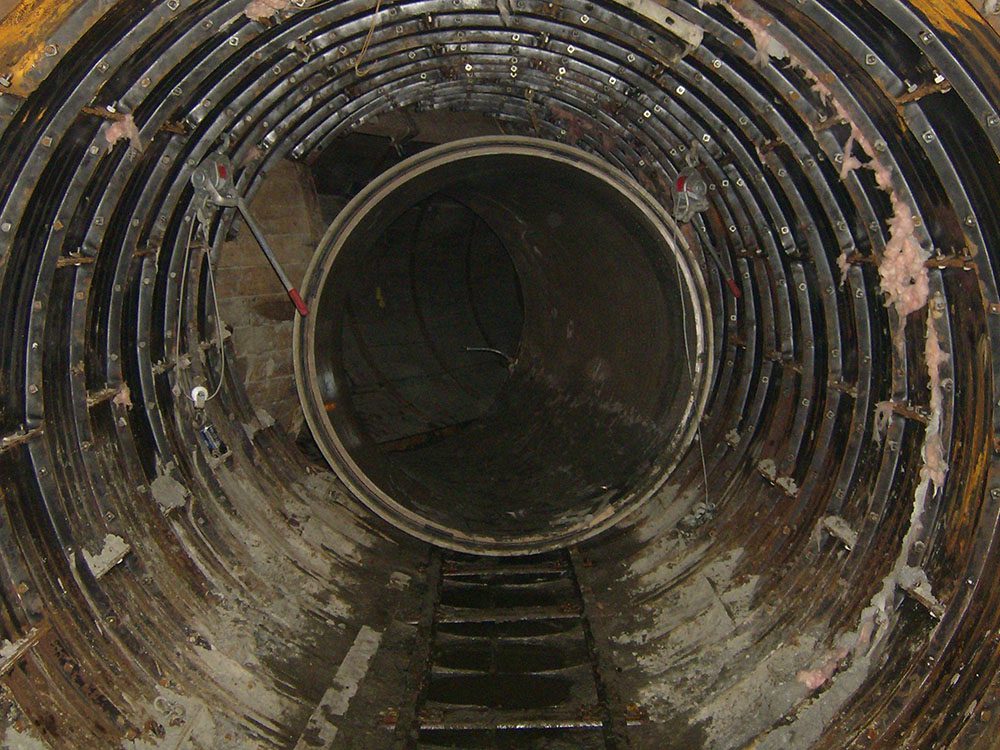 Completed in 2005 by Mole Constructors, the Lee Road Superior Road Intercommunity Relief Sewer Contract 1 project consisted of the excavation of approximately 22,593 linear feet of 7 to 8 ft 9-inch diameter tunnel and 10,839 linear feet of 7 ft diameter tunnel for a sanitary sewer through shale including shaft excavations to depths of 270 vertical feet. Tunnel excavation performed via a 105-inch diameter Lovat Tunnel Boring Machine (TBM) for the larger tunnel, and a 83-inch diameter Lovat TBM for the smaller tunnel. The initial tunnel support consisted of rock dowels with welded wire fabric or steel ribs and wood lagging. The final lining consists of 72-inch diameter reinforced concrete pipe for the larger tunnel and 42-inch diameter reinforced concrete pipe for the smaller tunnel. The shafts were supported via liner plates within soft ground, and rock dowels, welded wire fabric and shotcrete within rock. Tangential approach flow, baffle-type flow and standard drop structures were constructed within the shafts.