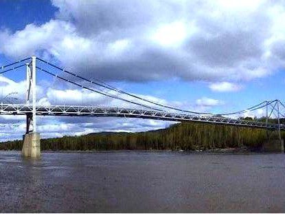 Completed in 1944 by American Bridge, the Liard River Bridge project consisted of a suspension bridge on the Alaska Highway constructed for the U.S. Department of War in six months. It is the only original bridge on the highway remaining in use today.