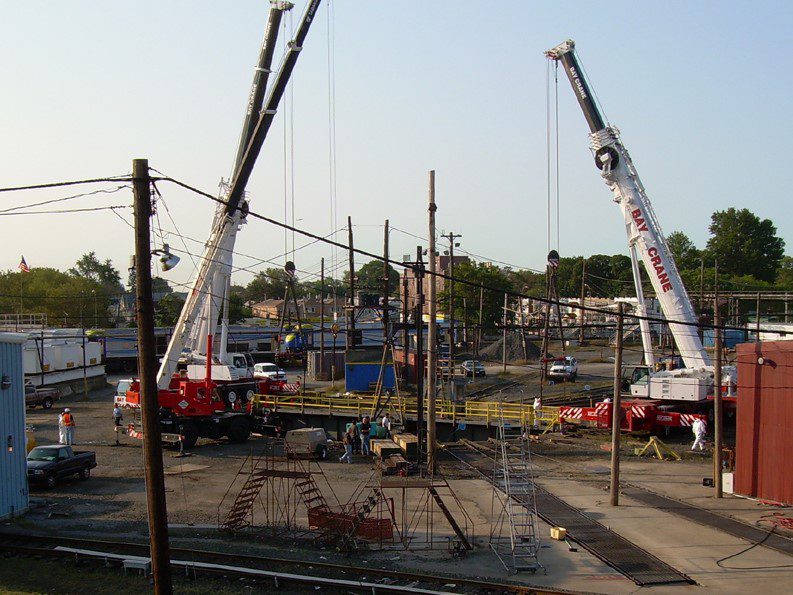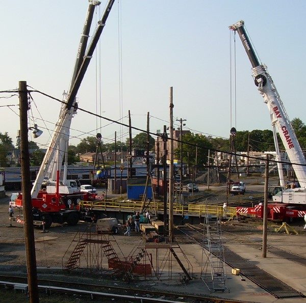 Completed in 2006 by American Bridge, the LIRR Locomotive Turntable Rehabilitation involved inspecting and replacing the center bearing of a 95-ton, 1908-era turntable at the Morris Park Yard. The work, completed 36 hours ahead of schedule, was performed under a 96-hour closure with Parsons Brinckerhoff as design subconsultant.