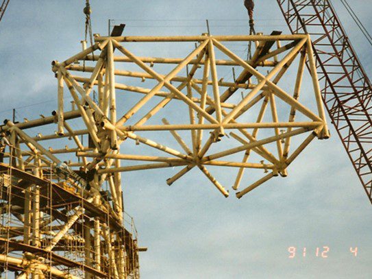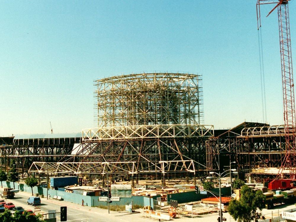 Completed in 1992 by American Bridge, the Los Angeles Convention Center project consisted of the largest project ever undertaken in downtown Los Angeles, covering 58 acres of land. The building contains 810,000 square feet, including a 560,000-square-foot exhibit hall area, 1,750 square feet of exhibit booths, 260,000 square feet of concourse halls, 65 meeting rooms, 6,200 parking spaces, and 32 truck docks. The project utilized 16,000 tons of structural steel, including long deep trusses, star columns, and a majestic space frame lobby. The expansion was completed in two phases.