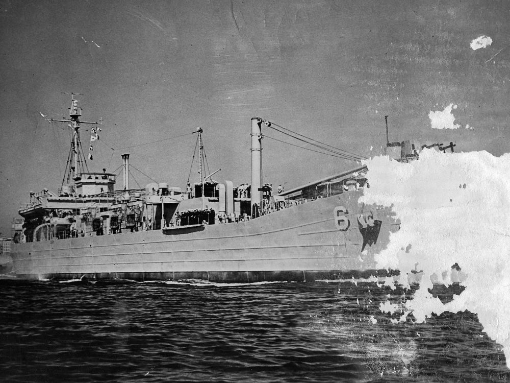 Built by American Bridge Company at the Ambridge Manufacturing Plant in Ambridge, PA. Authorized as LST-1095. Redesignated Aircraft Repair Ship (Aircraft) ARVA)-6, December 14, 1944. Laid down, January 22, 1945, at American Bridge Co., Ambridge, PA. Launched, April 25, 1945. Placed in temporary commission, June 19, 1945, for transit to her fitting out yard at New Orleans LA. Completed and placed in full commission as USS Megara (ARVA-6), June 27, 1945, at Algiers, LA., LCDR. Maxwell, T. Dalby, USNR in command. Decommissioned on June 3, 1946, at Green Cove Springs, FL. Laid up in the Atlantic Reserve Fleet, Green Cove Springs Group. Recommissioned, May 5, 1951, Cove Springs, FL., LCDR. R. J. Devito, USN in command. Decommissioned on January 16, 1956, at Green Cove Springs, FL. Laid up in the Atlantic Reserve Fleet, Green Cove Springs Group. Transferred, date unknown, to Atlantic Reserve Fleet Orange, TX. Struck from the Naval Register, June 1, 1973. Sold by DRMS, to Mexico, October 1, 1973, renamed ARM General Vicente Guerrero (A-05). Final Disposition, fate unknown.