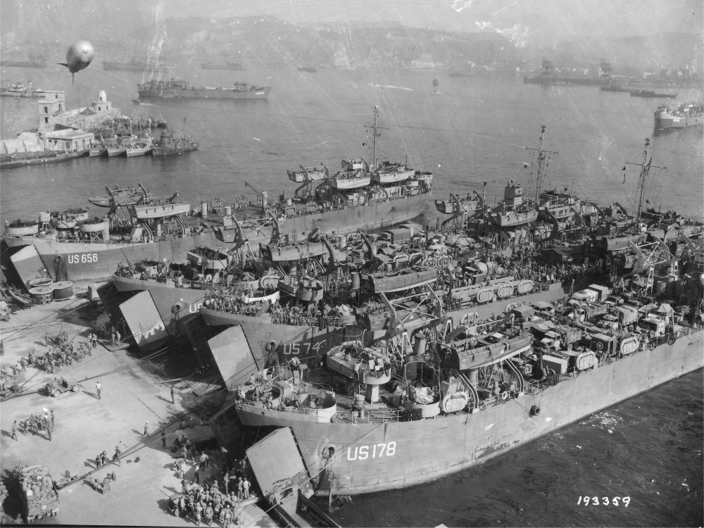 Built by American Bridge Company at the Ambridge Manufacturing Plant in Ambridge, PA. Launched February 18, 1944. Commissioned USS LST-656 on April 7, 1944. During World War II USS LST-656 was assigned to the Europe-Africa-Middle East Theater. Participated in the Invasion of Southern France (August 15 to September 22, 1944). USS LST-655 earned one battle star for World War II service. Following World War II USS LST-656 was assigned to Occupation and China service in the Far East for the following periods: September 2, 1945 to May 28, 1946 (Navy Occupation Service Medal) and September 2, 1945 to May 28, 1946 (China Service Medal). Decommissioned on May 29, 1946. Transferred to the State Department for disposition, date unknown. Struck from the Naval Register on July 3, 1946. Final Disposition, fate unknown.