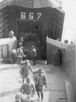 Built by American Bridge Company at the Ambridge Manufacturing Plant in Ambridge, PA. Launched February 25, 1944. Commissioned USS LST-657 on April 10, 1944. During World War II USS LST-657 was assigned to the Asiatic-Pacific Theater. Following World War II USS LST-657 was assigned to Occupation and China service in the Far East for the following periods: September 2, 1945 to February 23, 1946 (Navy Occupation Service Medal) and September 2, 1945 to February 23, 1946 (China Service Medal). Decommissioned on February 23, 1946 and assigned to Commander Naval Forces Far East (COMNAVFE) Shipping Control Authority for Japan (SCAJAP), redesignated Q071. Transferred to the Military Sea Transportation Service (MSTS), March 31, 1952 and placed in service as USNS T-LST-657. Placed out of service and struck from the Naval Register, May 1, 1961. Sold to Indonesia 1961 as Teluk Manado (L 505), struck 1983. Final Disposition, fate unknown.