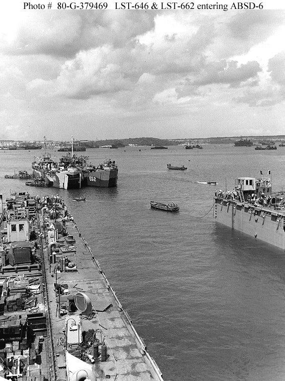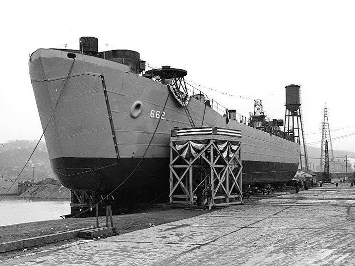 Built by American Bridge Company at the Ambridge Manufacturing Plant in Ambridge, PA. Launched April 5, 1944. Commissioned USS LST-662 on May 2, 1944. During World War II USS LST-662 was assigned to the Asiatic-Pacific Theater. Participated in three campaigns including Western Caroline Islands operation (Capture and occupation of southern Palau Islands, Peleliu, September 6 to October 14, 1944), Manila Bay-Bicol operations (Zambales-Subic Bay, January 29 to 30, 1945) and Okinawa Gunto operation (Assault and occupation of Okinawa Gunto, April 1 to 28, 1945). USS LST-662 earned three battle stars for World War II service. Decommissioned on December 19, 1945. Struck from the Naval Register on January 8, 1946. Sold on June 25, 1946, to Arctic Circle Exploration, Inc., of Seattle, WA. converted to a fish factory processing ship, named MV Neva. Final Disposition, fate unknown.