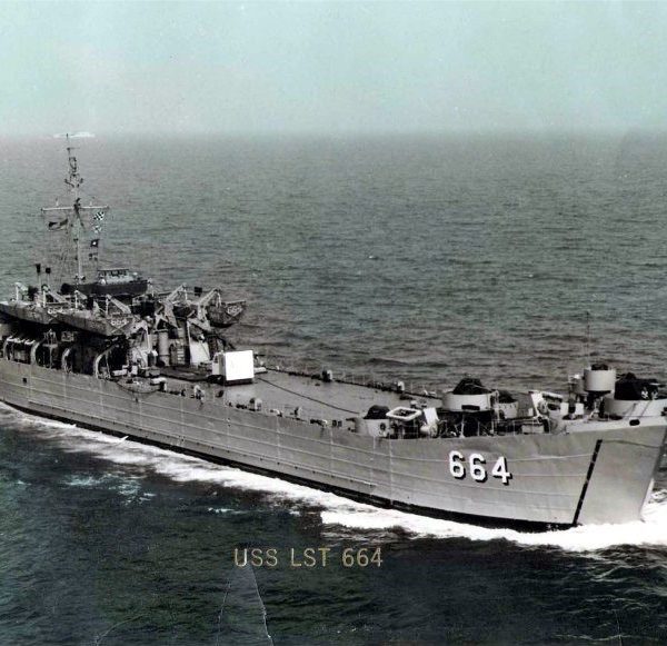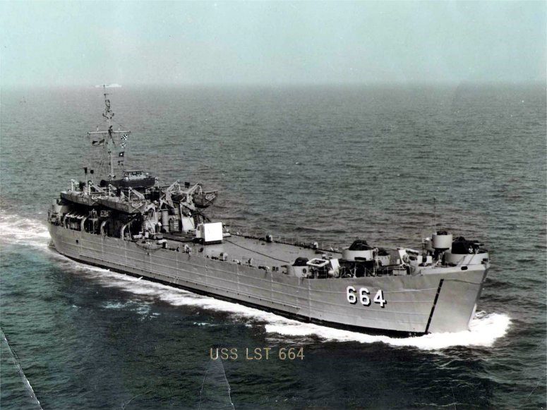 Built by American Bridge Company at the Ambridge Manufacturing Plant in Ambridge, PA. Launched April 13, 1944. Commissioned USS LST-664 on May 10, 1944. During World War II USS LST-664 was assigned to the Europe-Africa-Middle East Theater. Participated in the Invasion of Southern France (August 15 to September 25, 1944). USS LST-664 earned one battle star for World War II service. Decommissioned on October 12, 1949. Recommissioned on December 14, 1951. Decommissioned Date unknown. Assigned to the Military Sea Transportation Service (MSTS), April 19, 1955, placed in service as USNS T-LST-664. Placed out of service and struck from the Naval Register on June 15, 1973. Final Disposition, sold for scrapping on October 23, 1973, to Majid Karoon, Inc., Khorramshahr, Iran.