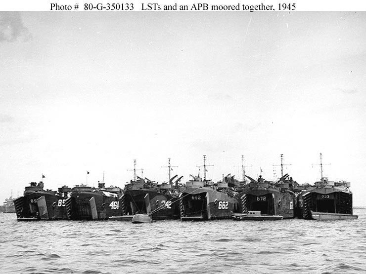 Built by American Bridge Company at the Ambridge Manufacturing Plant in Ambridge, PA. Launched June 6, 1944. Commissioned USS LST-676 on June 20, 1944. Converted to a Benewah Class Self-propelled Barracks Ship at Waipio Amphibious Operating Base, West Loch Pearl Harbor, TH., redesignated Landing Ship Tank (Modified), USS LST(M)-676 in October 1944. Redesignated and named USS Yavapai (APB-42) on March 1, 1945. During World War II USS LST(M)-676 / USS Yavapai (APB-42) was assigned to the Asiatic-Pacific Theater. Participated in the Iwo Jima operation (Assault and occupation of Iwo Jima, February 20 to April 27, 1945). USS LST(M)-676 / USS Yavapai (APB-42) earned one battle star World War II service. Following World War II USS Yavapai (APB-42) was assigned to Occupation and China service in the Far East for the following periods: September 6, 1945 to April 8, 1946 and April 17 to 20, 1946. Decommissioned on December 3, 1946, at Charleston Naval Shipyard, Charleston, S.C. Laid up in the Atlantic Reserve Fleet. Struck from the Naval Register on May 1, 1959. Sold on September 11, 1959. Final Disposition, fate unknown.