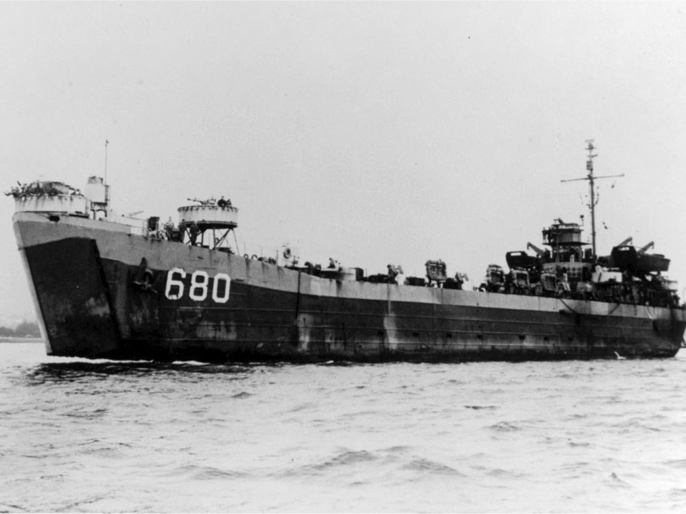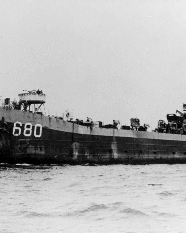 Built by American Bridge Company at the Ambridge Manufacturing Plant in Ambridge, PA. Launched June 26, 1944. Commissioned USS LST-680 on July 21, 1944. During World War II, USS LST-680 was assigned to the Asiatic-Pacific Theater. Participated in three campaigns including Luzon operation (Lingayen Gulf landings, January 5 to 16, 1945), Manila Bay-Bicol operations (Zambalesa-Subic Bay, January 20 to 30, 1945) and Consolidation and capture of the Southern Philippines (Mindanao Island landings, April 17 to 23, 1945). USS LST-680 earned three battle stars for World War II service. Following World War II USS LST-680 was assigned to Occupation service in the Far East from September 23 to October 25, 1945 and November 17, 1945 to April 10, 1946. Decommissioned on July 5, 1946. Struck from the Naval Register on August 28, 1946. Final Disposition, sold for scrapping on May 14, 1948, to Bethlehem Steel Co., Bethlehem, PA.