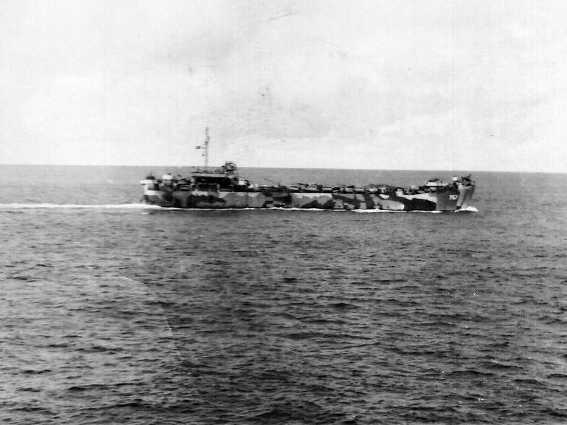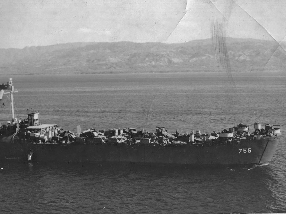 Built by American Bridge Company at the Ambridge Manufacturing Plant in Ambridge, PA. Launched July 21, 1944. Commissioned USS LST-757 on August 15, 1944. During World War II, USS LST-757 was assigned to the Asiatic-Pacific Theater. Participated in two campaigns including Luzon operation (Lingayen Gulf landings, January 4 to 18, 1945) and Consolidation and capture of the Southern Philippines (Mindanao Island landings, April 17 to 23, 1945). USS LST-757 earned two battle stars for World War II service. Following World War II USS LST-757 was assigned to Occupation service in the Far East for the following periods: September 9 to 25, 1945; October 12 to November 8, 1945; and December 10 to 23, 1945. Decommissioned on May 28, 1946. Struck from the Naval Register on July 3, 1946. Final Disposition, sold for scrapping on May 10, 1948, to Bethlehem Steel Co., Bethlehem, PA.