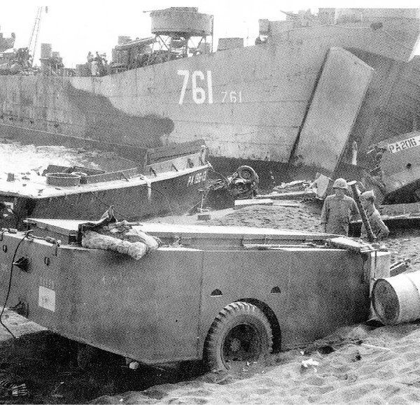 Built by American Bridge Company at the Ambridge Manufacturing Plant in Ambridge, PA. Launched August 7, 1944. Commissioned USS LST-761 on September 2, 1944. During World War II, USS LST-761 was assigned to the Asiatic-Pacific Theater. Participated in the Iwo Jima operation (Assault and occupation of Iwo Jima, February 19 to March 15, 1945). USS LST-761 earned one battle star for World War II service. Coast Guard crew removed on March 29, 1946. Decommissioned on July 19, 1946. Laid up in the Pacific Reserve Fleet, Columbia River Group. Named USS Esmeraldo County (LST-761) on July 1, 1955. Struck from the Naval Register, date unknown. Final Disposition, sunk as a target in 1959.