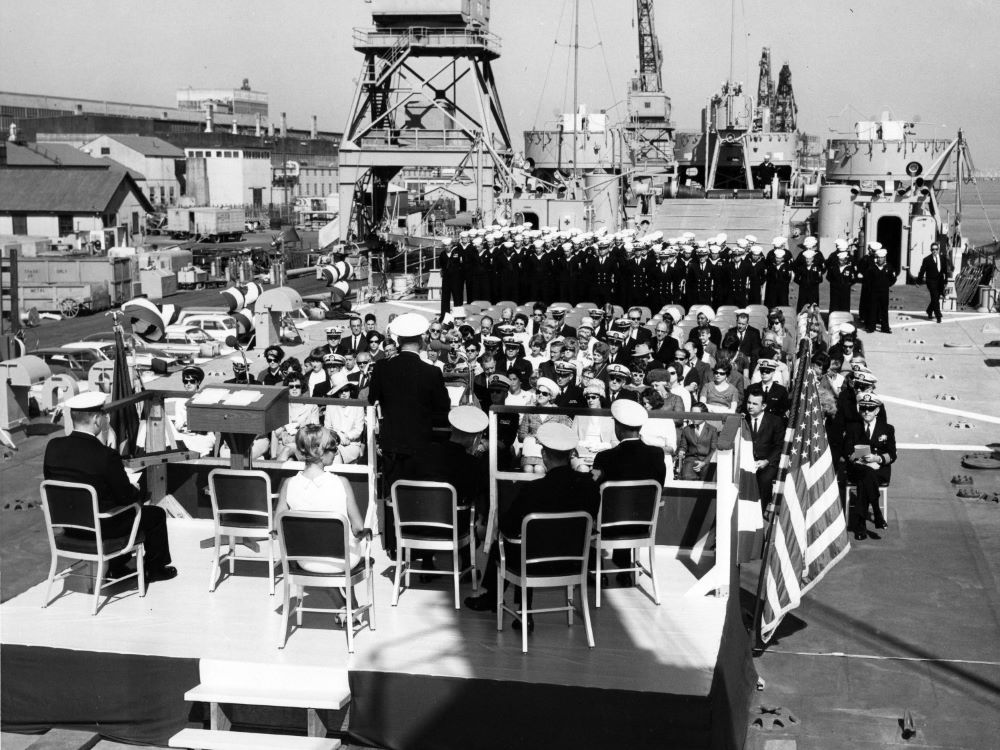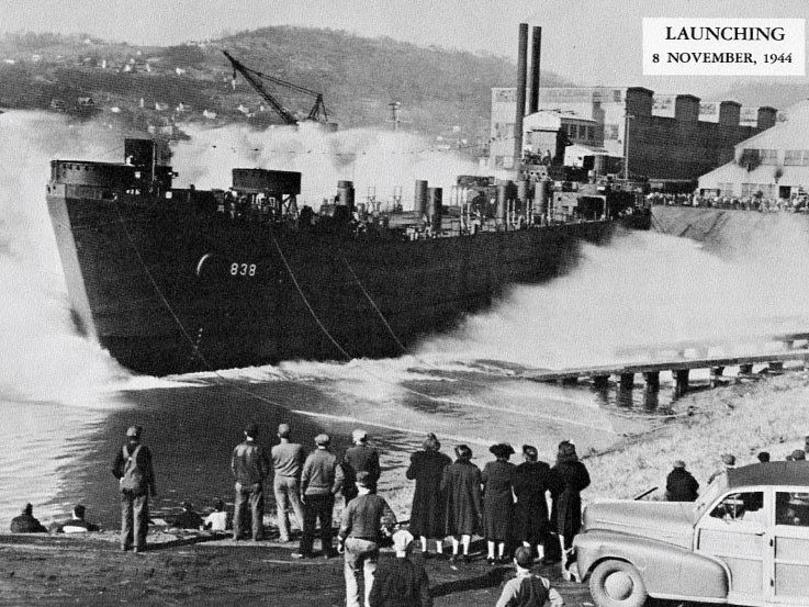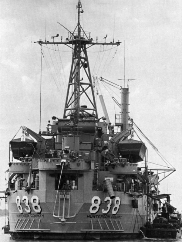 Built by American Bridge Company at the Ambridge Manufacturing Plant in Ambridge, PA. Launched November 8, 1944. Commissioned USS LST-838 on December 4, 1944. During World War II, USS LST-838 was assigned to the Asiatic-Pacific Theater. Participated in the Okinawa Gunto operation (Assault and occupation of Okinawa Gunto, April 1 to 3, 1945). Following World War II USS LST-838 was assigned to Occupation and China service in the Far East for the following periods: September 6 to 23, 1945 and October 29 to November 9, 1945. Decommissioned on August 7, 1946, at Vancouver, WA. Laid up in the Pacific Reserve Fleet. Named USS Hunterdon County (LST-838) on July 1, 1955. Recommissioned on September 10, 1966, at Mare Island Naval Shipyard, Vallejo, CA. Reclassified Patrol Craft Tender (AGP-838), date unknown. During the Vietnam War USS Hunterdon County participated in the following campaign: Vietnamese Counteroffensive – Phase III (July 5 to December 7, 1967); Tet Counteroffensive (February 15 to April 1, 1968); Vietnamese Counteroffensive – Phase IV (April 2 to June 30, 1968); Vietnamese Counteroffensive – Phase V (July 1 to November 1, 1968); Vietnamese Counteroffensive – Phase VI (November 2, 1968 to February 22, 1969); Tet 69/Counteroffensive (February 23 to April 11, 1969 and May 10 to June 8, 1969); Vietnam Summer-Fall 1969 (June 9 to October 20, 1969); Vietnam Winter-Spring 1970 (January 11 to April 30, 1979); Sanctuary Counteroffensive (May 1 to June 17, 1970); and Vietnamese Counteroffensive – Phase VII (July 14 to December 24, 1970 and January 27 to March 31, 1971). During the Vietnam War USS Hunterdon County (LST-838 / AGP-838) served continuously in country and in contiguous waters, with the exception of overhaul periods, from late 1967 to early 1971 participating in the following campaigns. (Dates listed do not include underway transit times within the contiguous waters along the Vietnam coast as defined by the US Navy and so specified by the Vietnam Service Medal.) Decommission and struck from the Naval Register and transferred to Malaysia on August 1, 1971, under the Security Assistance Program, renamed Sri Langkawi (A-1500). USS LST-838 earned one battle star for World War II service and ten campaign stars as Hunterdon County for Vietnam War service. Final Disposition, scrapped in the 1980s.