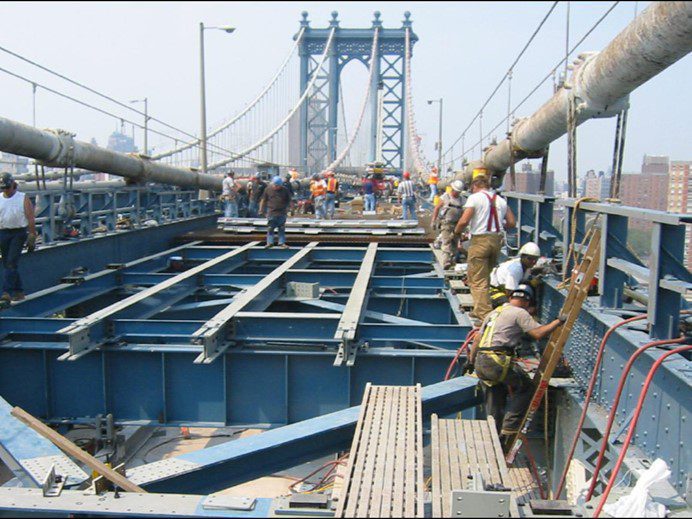 American Bridge fabricated structural steel for the rehabilitation of the Manhattan Bridge lower roadway.