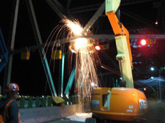 Completed in 2009 by American Bridge, the Marine Parkway Bridge Repairs project involved structural steel repairs to the deck truss bridge and its lift-span. Work included replacing upper laterals, sway frame members, 7,500 lacing bars, chord batten plates, bracing gusset plates, and reinforcing floor beams, towers, and trusses. The project also involved painting and fabricating 516 tons of repair steel while maintaining traffic flow. The 3,842 (1,171m) bridge, including its 540 (165m) lift span, was originally built by American Bridge in 1937.